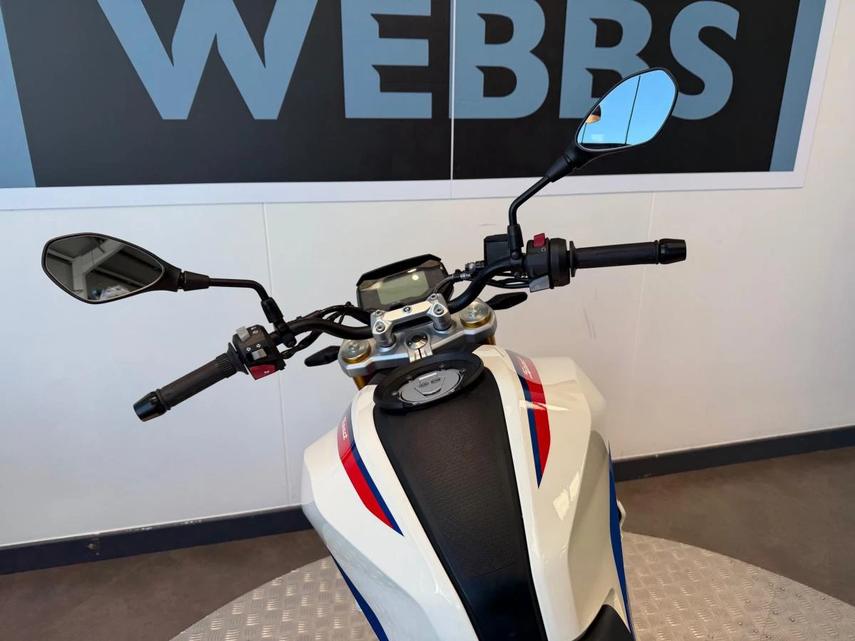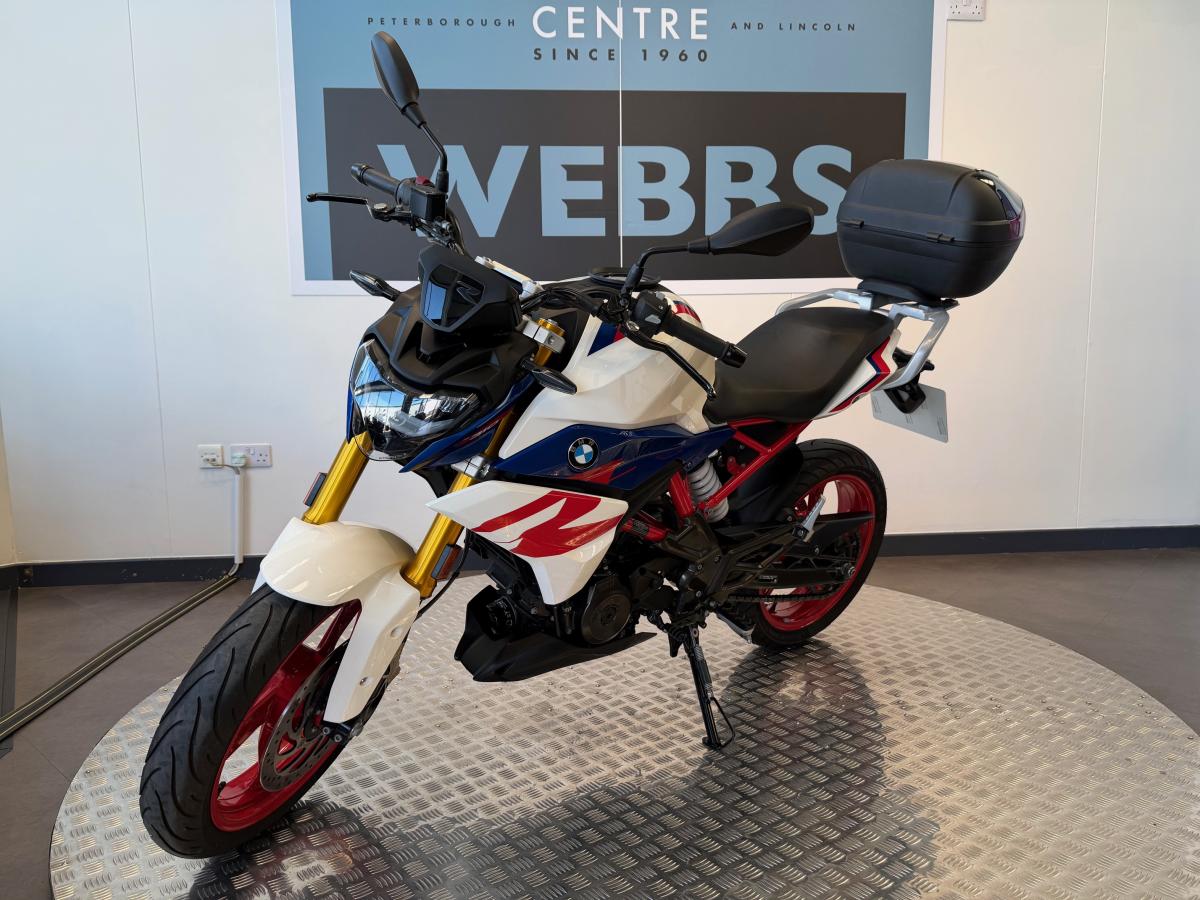 This G 310-R was first registered in late April 2023 on a '23 plate. Covered less than 3500 miles from new. In lovely condition throughout with the addition of a top box. A lovely looking bike finished in BMW's red, white and blue colourway for that sporty image. ABS, LED lights - incorporating DRL's (daytime running lights) as standard. Offer's a great return on MPG's and rider confidence on the daily commute or B-road blast.