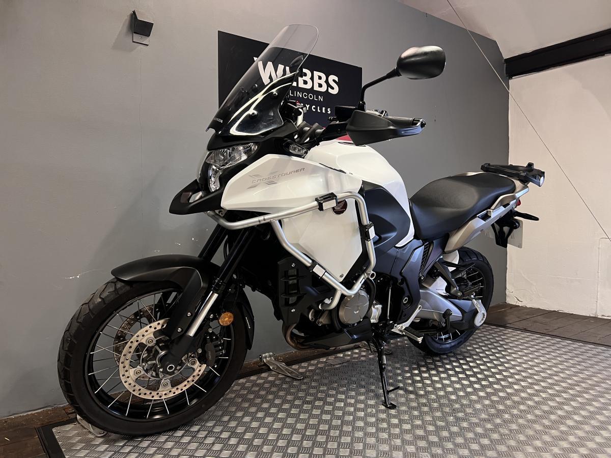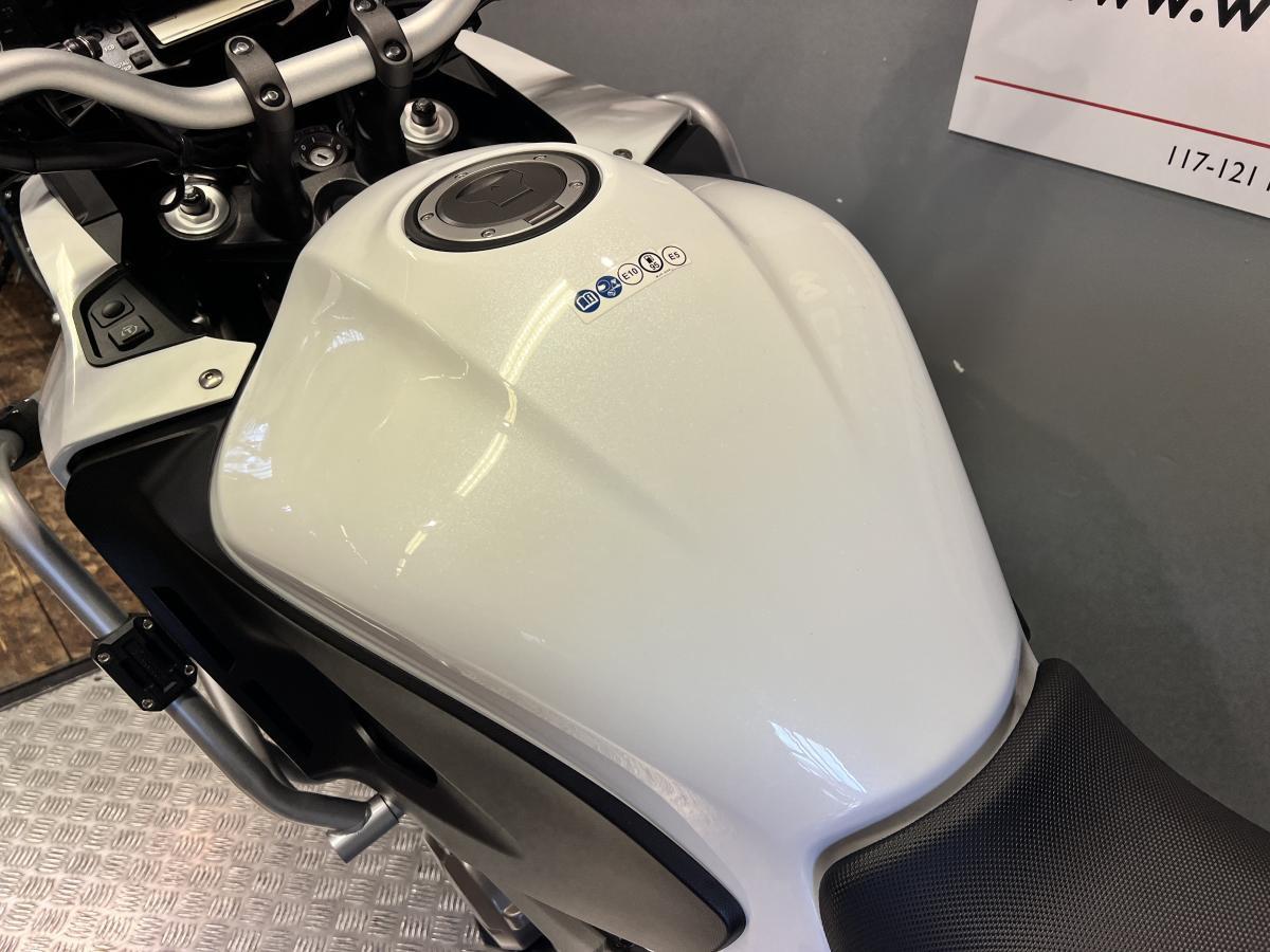 Honda's 1200 V4 Adventure bike! First registered in September 2019 on a 69 plate with just 6,956 miles on the clock. Finished in Pearl Glare White and fitted with a set of engine bars, radiator guard, Honda heated grips and a Givi rack (no top box). Backed up with service history with the first service completed in June 2021 at 523 miles, a customer self-service in June 2022 at 1,207 miles and the last service was in October 2023 at 2,143 miles. We will be fitting a new set of tyres and servicing this bike included in with the price.