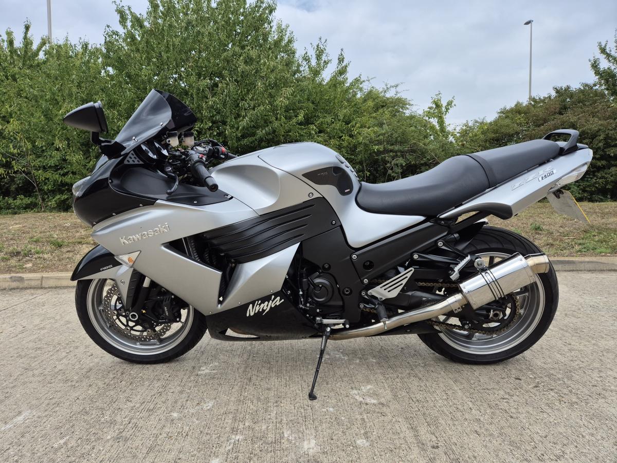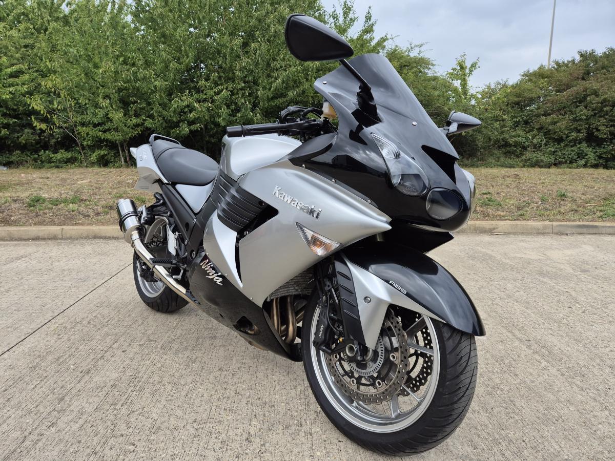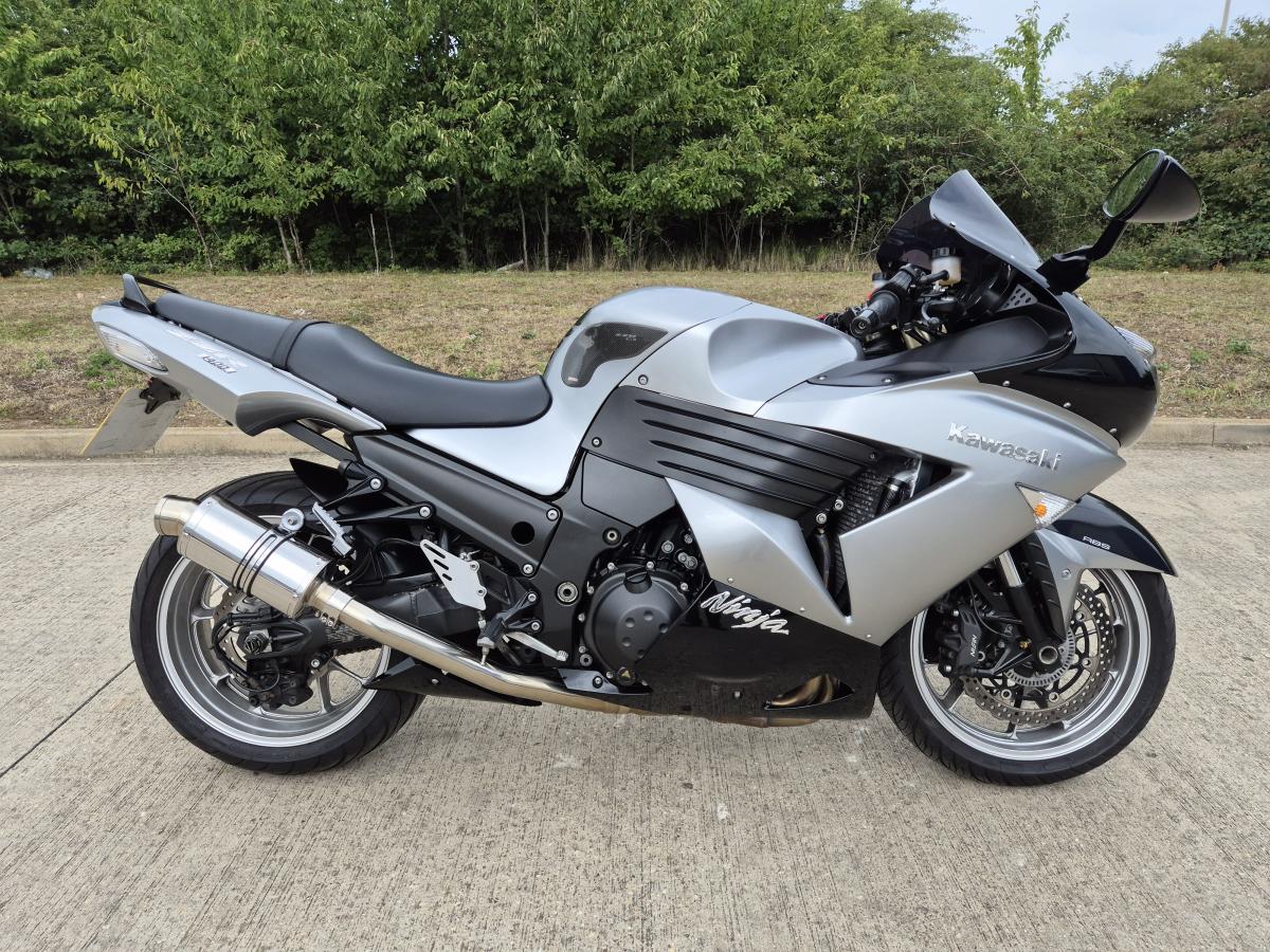 This mighty ZZR1400 is Kawasaki's answer to a hyper sports touing machine - and boy does it go well! With less than 12000 miles (11,634 to be exact) and a sweet sounding silky smooth and powerful motor - reknown for reliability. Finished in the timeless Silver and Black livery and fitted with a twin set of stainless stubby Delkevic exhausts, a tinted double bubble screen, mirror extenders, tank pads and rear hugger. Lots of big bike for little bike money!