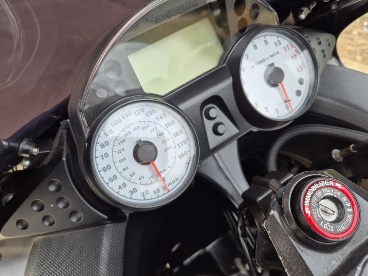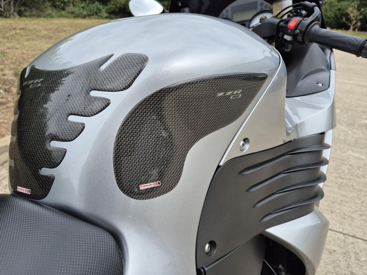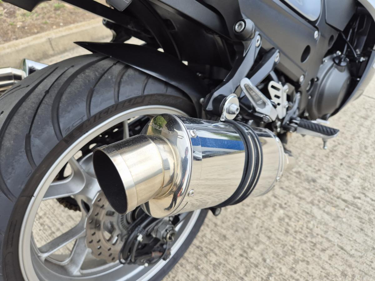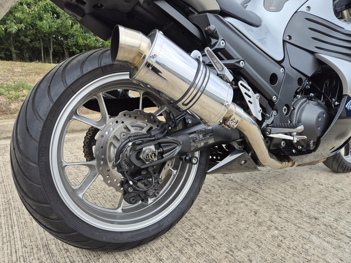 This mighty ZZR1400 is Kawasaki's answer to a hyper sports touing machine - and boy does it go well! With less than 12000 miles (11,634 to be exact) and a sweet sounding silky smooth and powerful motor - reknown for reliability. Finished in the timeless Silver and Black livery and fitted with a twin set of stainless stubby Delkevic exhausts, a tinted double bubble screen, mirror extenders, tank pads and rear hugger. Lots of big bike for little bike money!