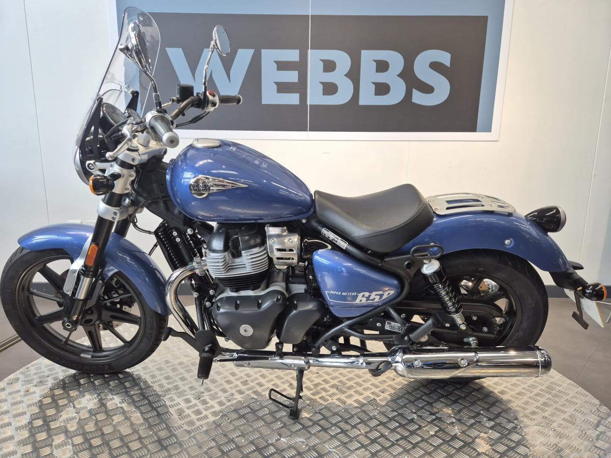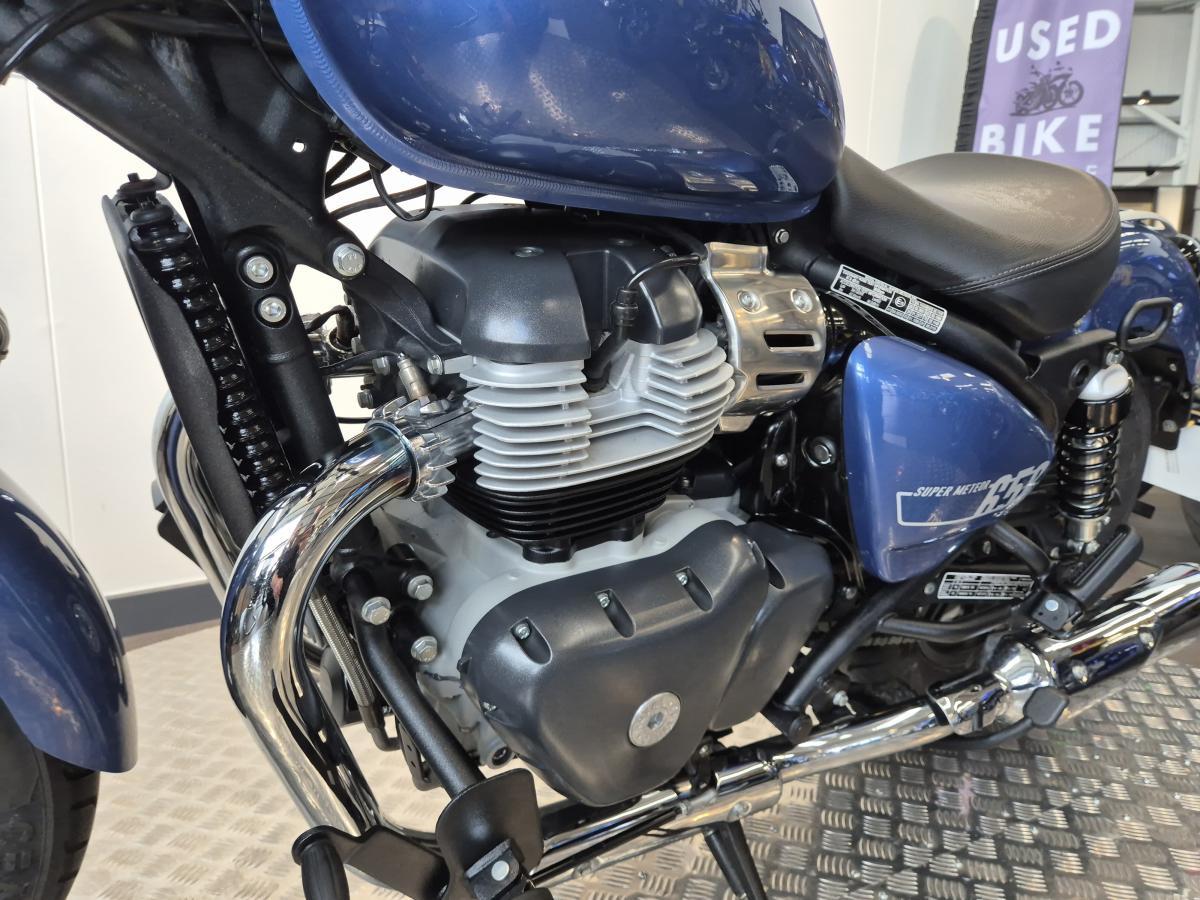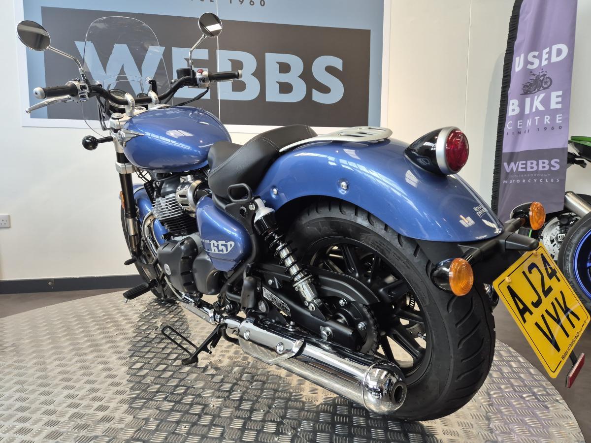 What a great looking low-slung 650 cruiser we have here, finished in a stunning metallic blue paint scheme. This Royal Enfield was first registered in mid-August 2024 on a '24 plate and has covered 3,200 miles and is in great condition fitted with a rear pressed luggage rack, a centre stand and a summer screen.