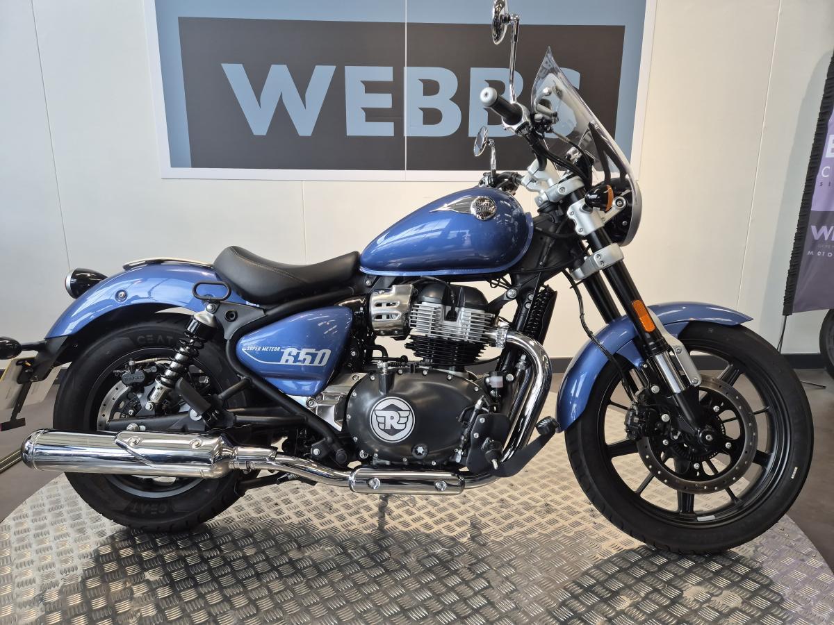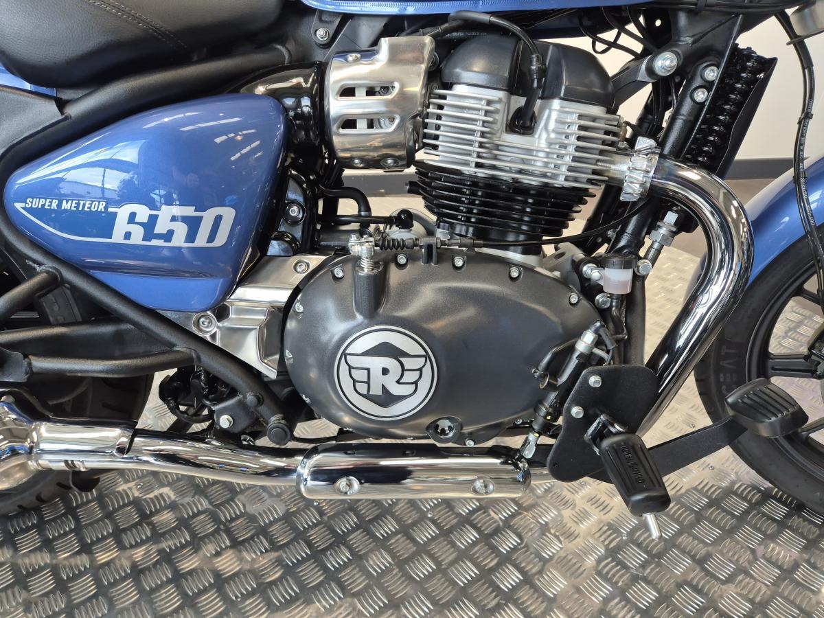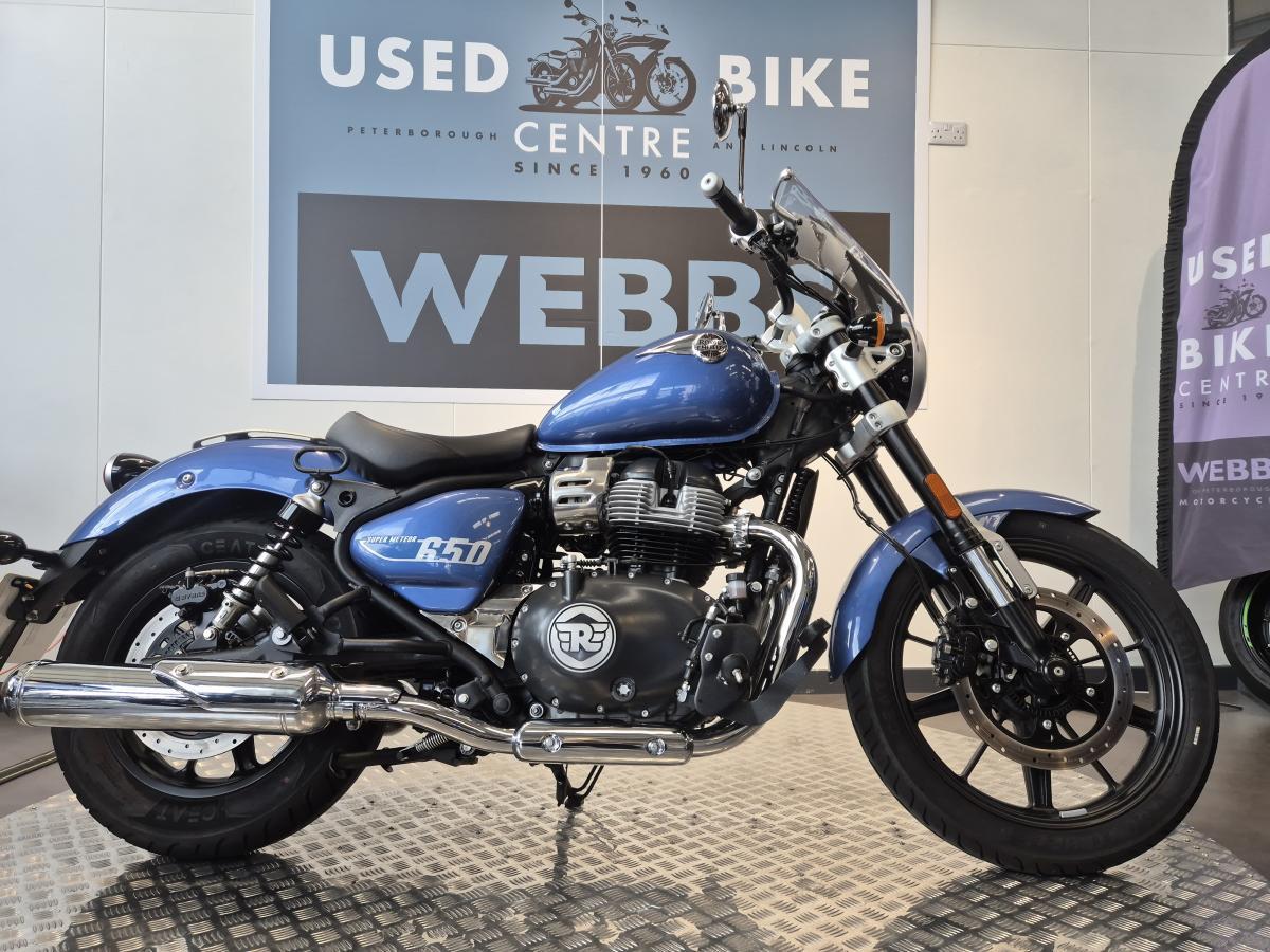 What a great looking low-slung 650 cruiser we have here, finished in a stunning metallic blue paint scheme. This Royal Enfield was first registered in mid-August 2024 on a '24 plate and has covered 3,200 miles and is in great condition fitted with a rear pressed luggage rack, a centre stand and a summer screen.