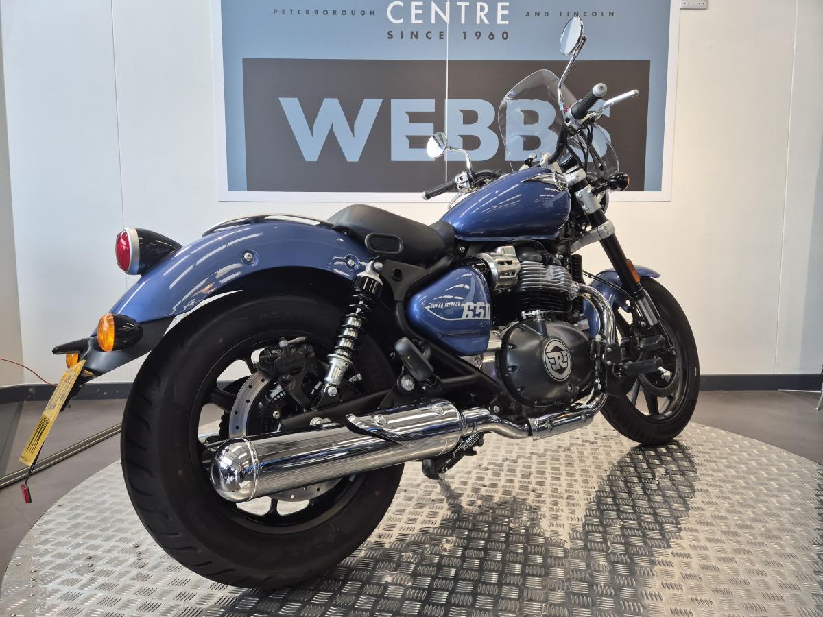 What a great looking low-slung 650 cruiser we have here, finished in a stunning metallic blue paint scheme. This Royal Enfield was first registered in mid-August 2024 on a '24 plate and has covered 3,200 miles and is in great condition fitted with a rear pressed luggage rack, a centre stand and a summer screen.