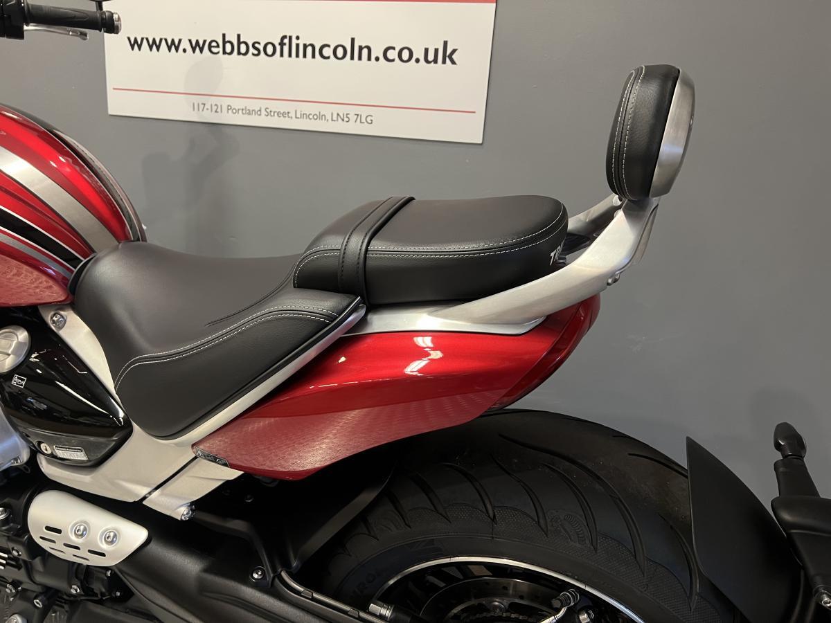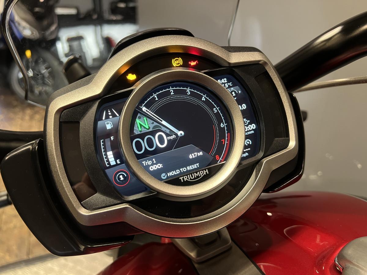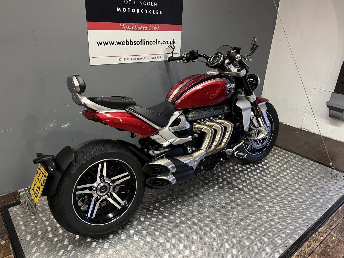 If your on the look out for a very low mileage Rocket 3 GT finished in the stunning Carnival Red & Sapphire Black paint scheme. Look no further! This fine example was first registered in September 2023 on a '73 plate. Having two owners from new and ONLY 632 MILES!!! Benefits from the remainder of the Triumph extended warranty until September 2026.
