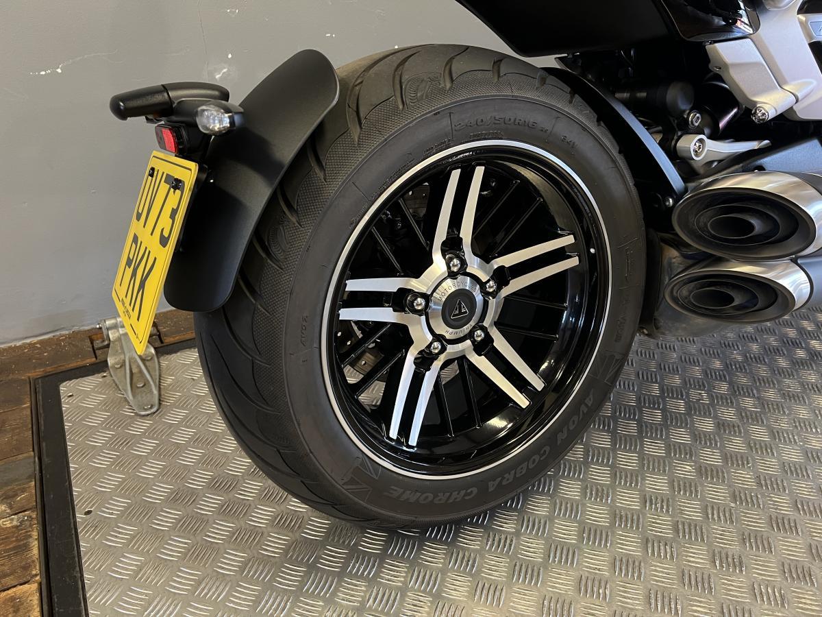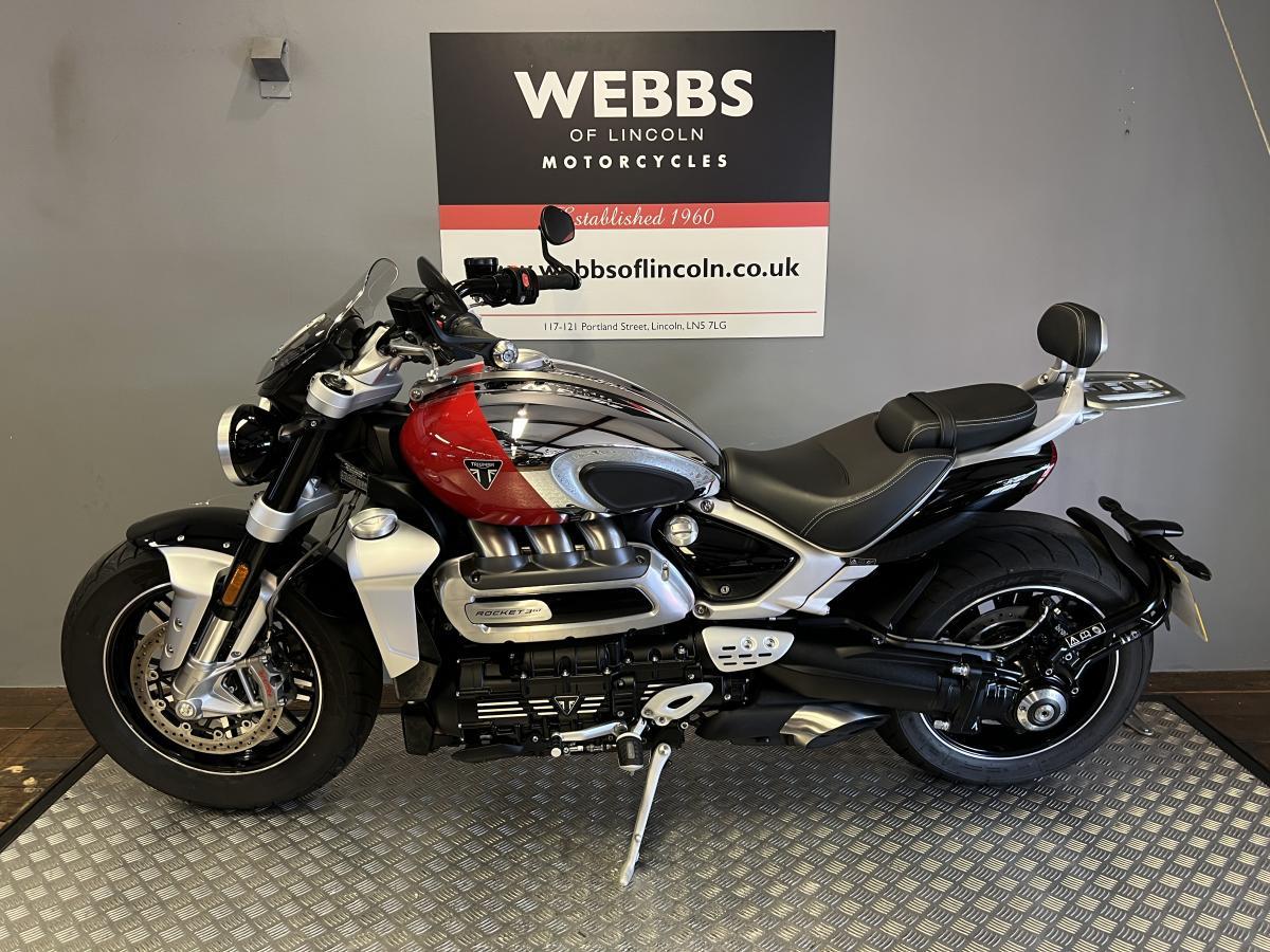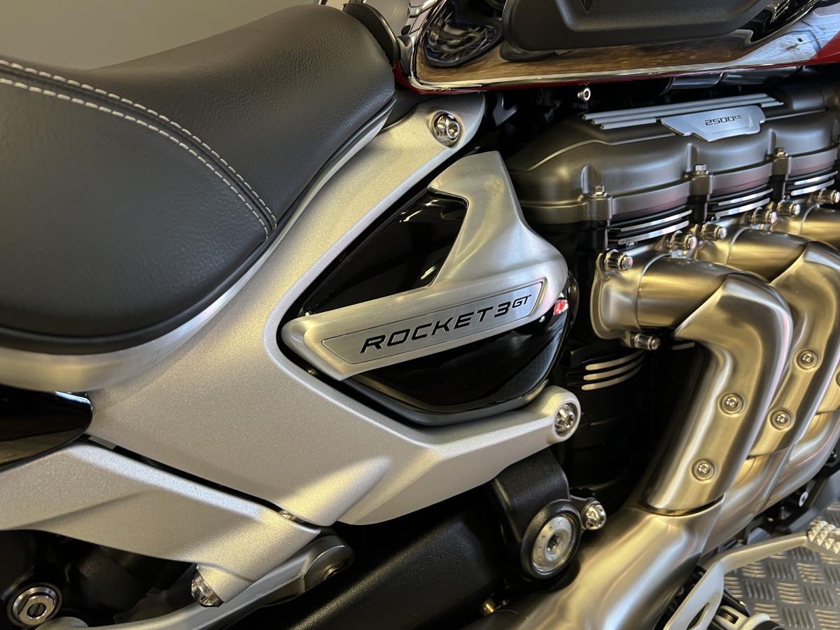 This stunning Triumph Rocket 3 GT Chrome edition was first registered in November 2023 on a 73 plate with one owner and just 1,424 miles on the clock. Fitted with the genuine Triumph accessory mid peg's which change the riding position as well as the easy shift, rear rack and knee pads (accessories worth over £1350!) Full Triumph service history and will benefit from a fresh service by our workshop.