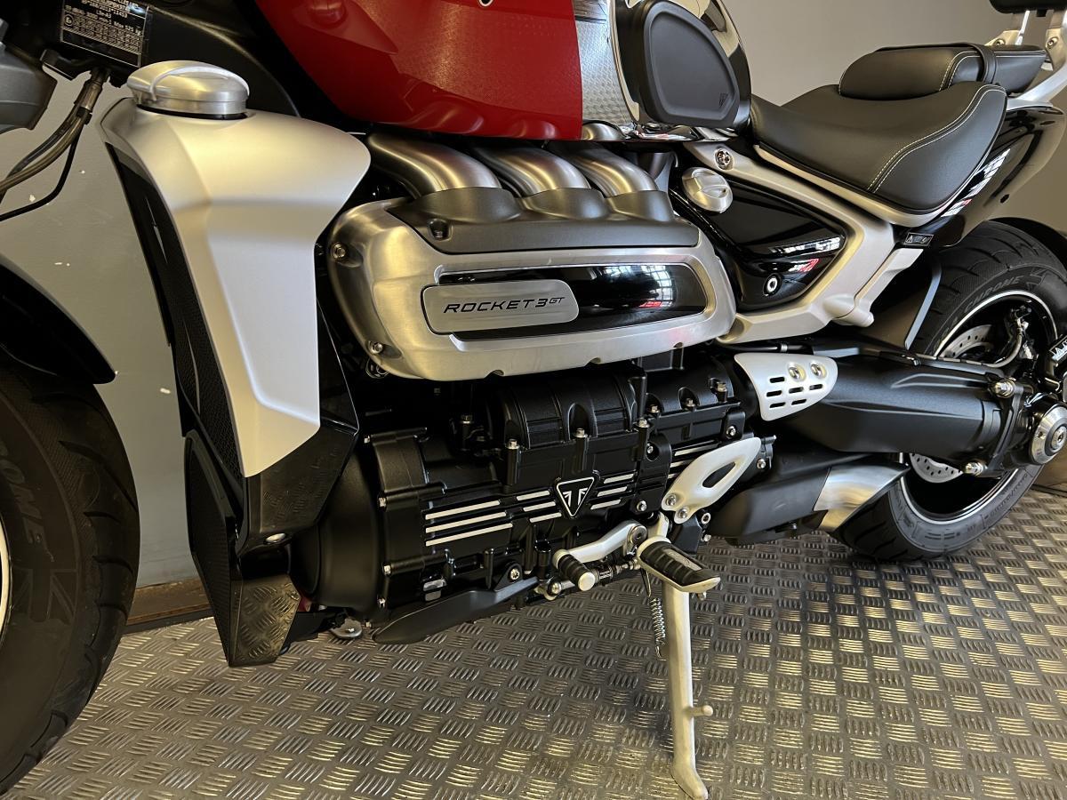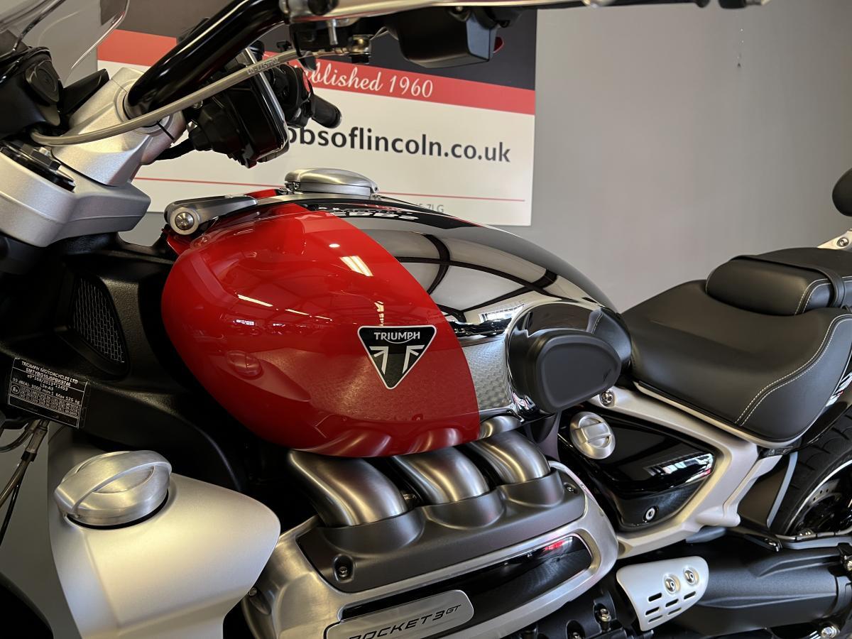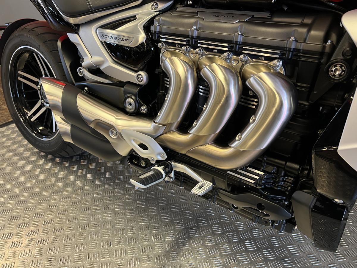 This stunning Triumph Rocket 3 GT Chrome edition was first registered in November 2023 on a 73 plate with one owner and just 1,424 miles on the clock. Fitted with the genuine Triumph accessory mid peg's which change the riding position as well as the easy shift, rear rack and knee pads (accessories worth over £1350!) Full Triumph service history and will benefit from a fresh service by our workshop.
