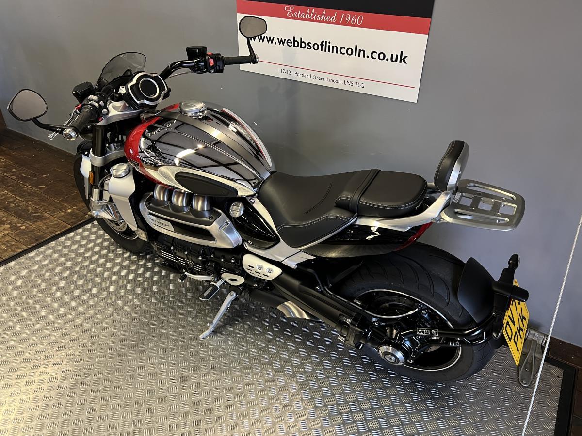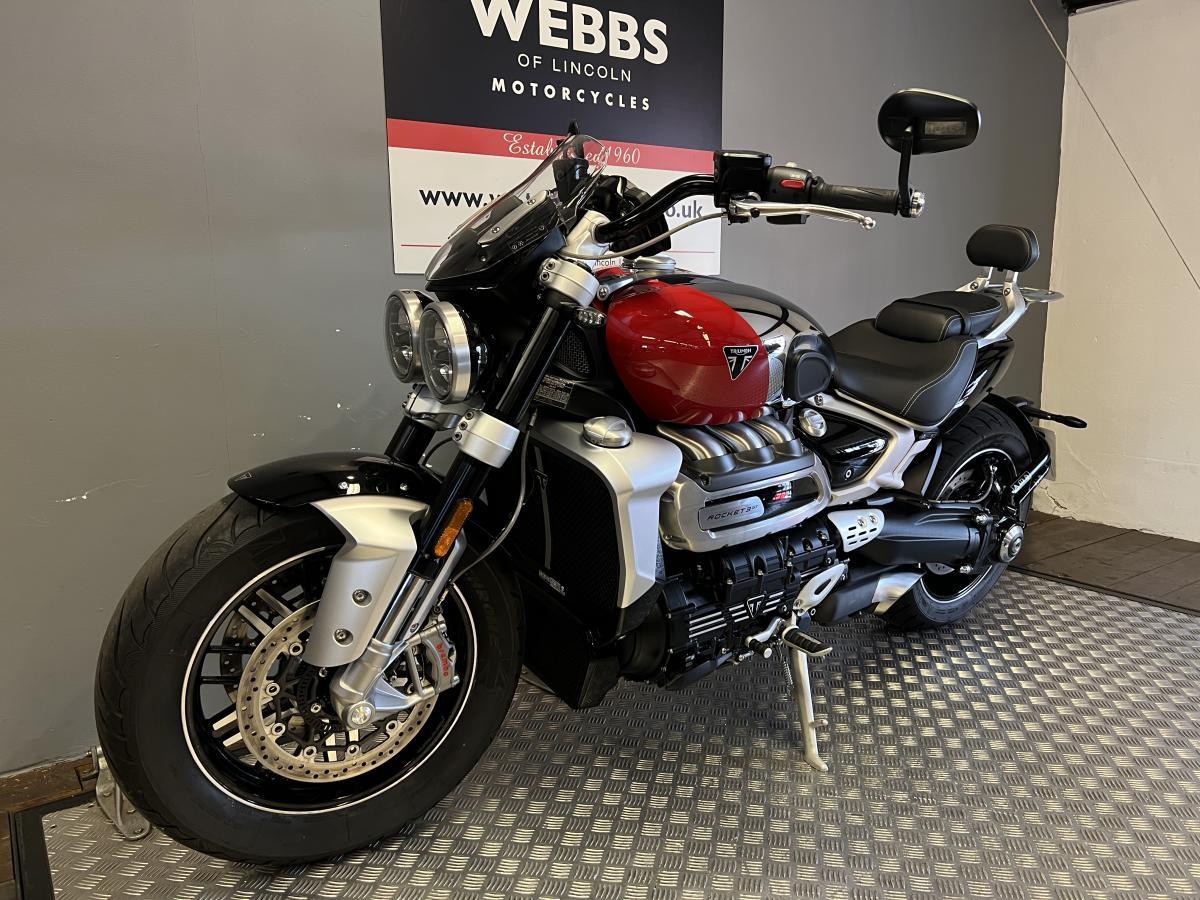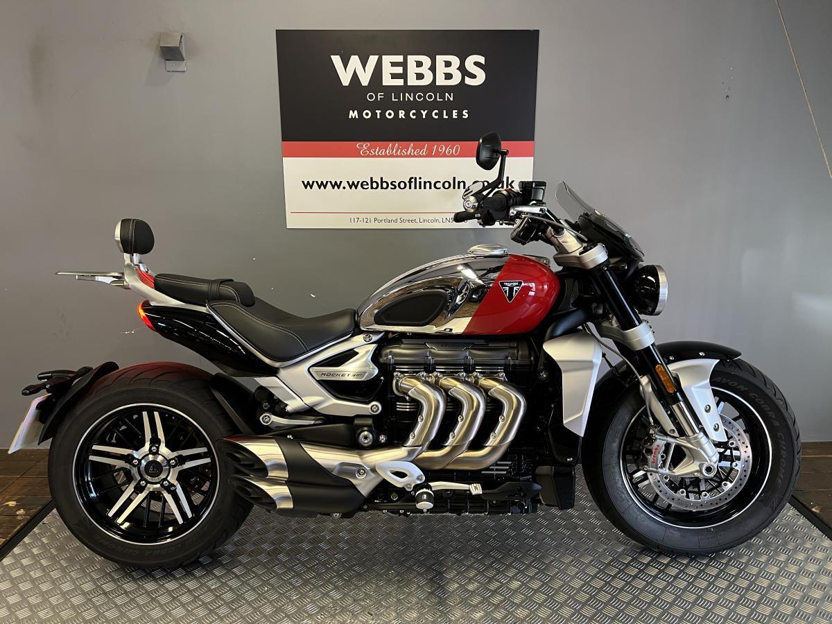 This stunning Triumph Rocket 3 GT Chrome edition was first registered in November 2023 on a 73 plate with one owner and just 1,424 miles on the clock. Fitted with the genuine Triumph accessory mid peg's which change the riding position as well as the easy shift, rear rack and knee pads (accessories worth over £1350!) Full Triumph service history and will benefit from a fresh service by our workshop.