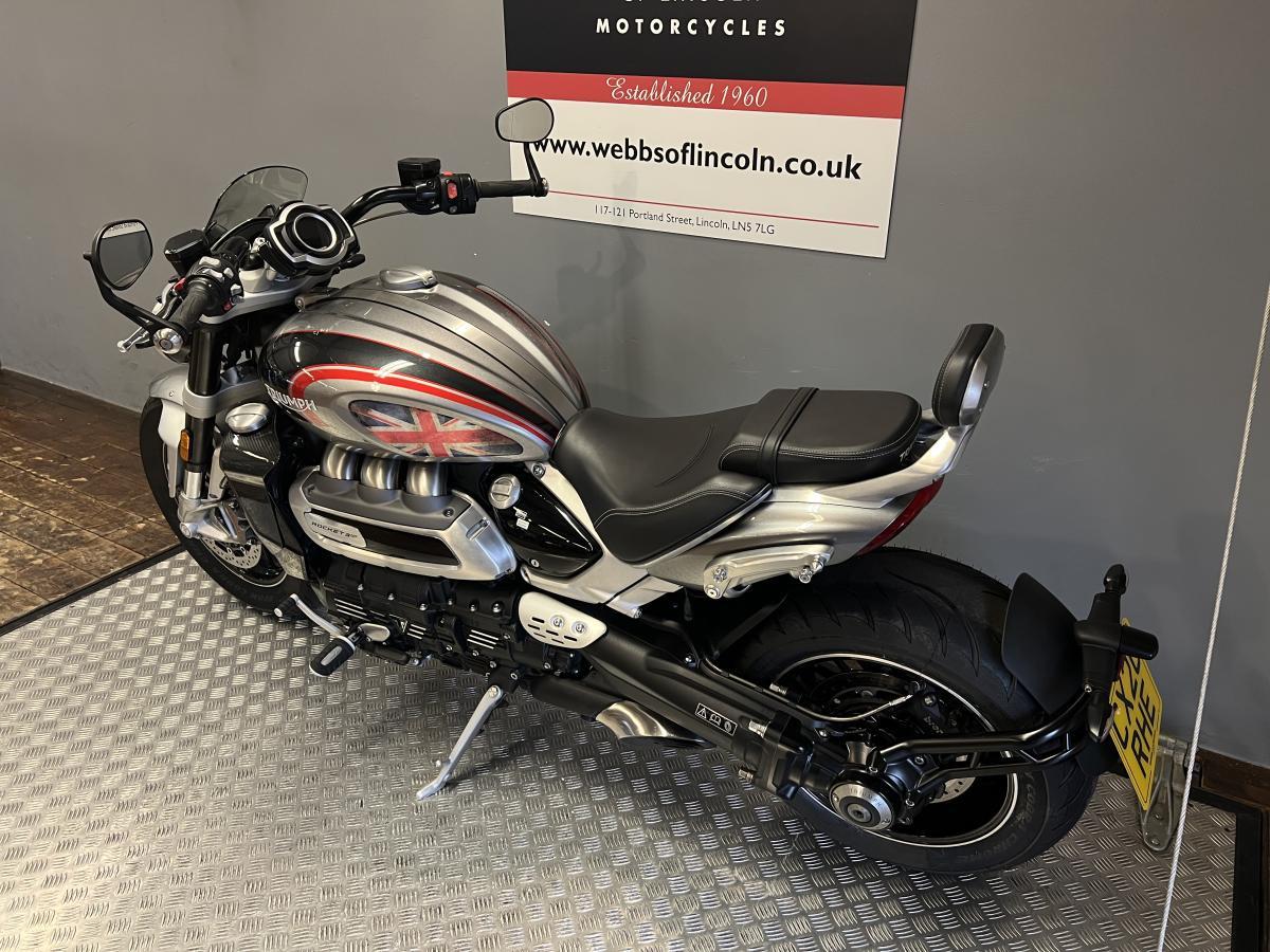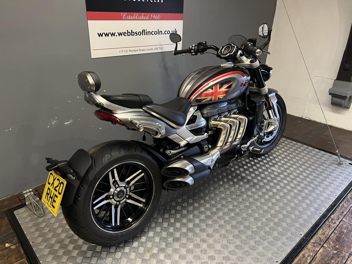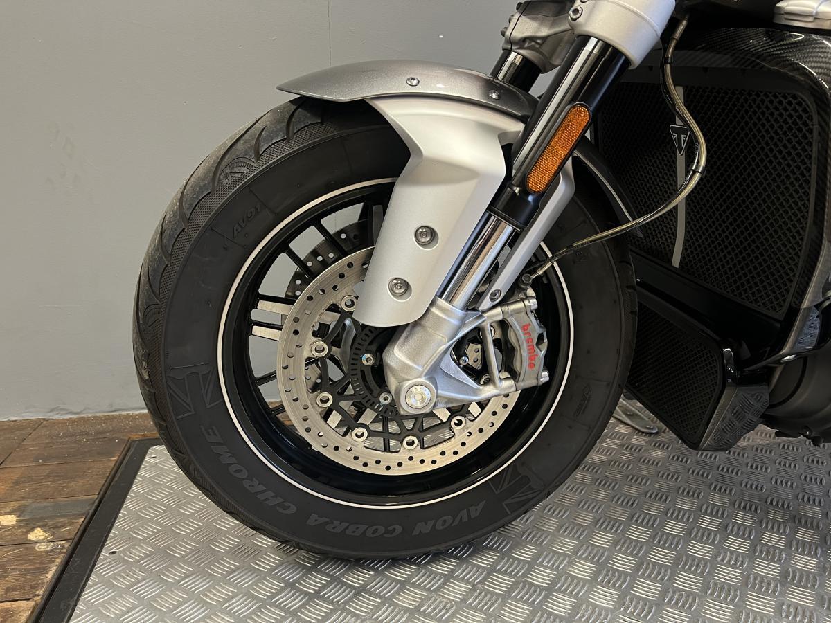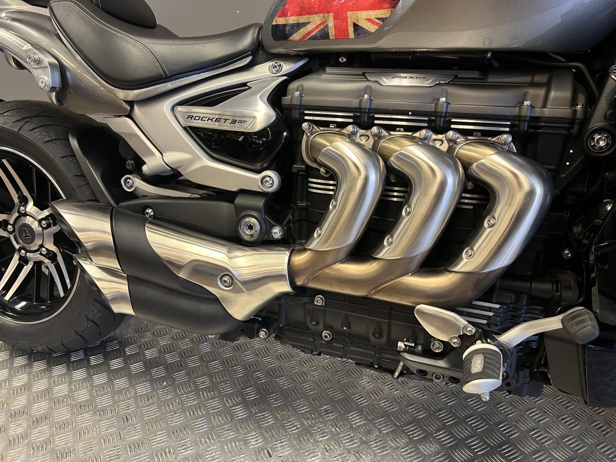 One owner from new Triumph Rocket 3 GT. Finished in Silver Ice / Storm Grey, this Rocket was first registered in March 2020 on a 20 plate and has covered just over 8,000 miles. Fitted with Triumph heated grips, Bluetooth connectivity unit, knee pads, carbon radiator cowls and the Triumph pannier mounting kit (panniers not included). Backed up with 5 service stamps in the book and will also receive a fresh service by our team once sold.