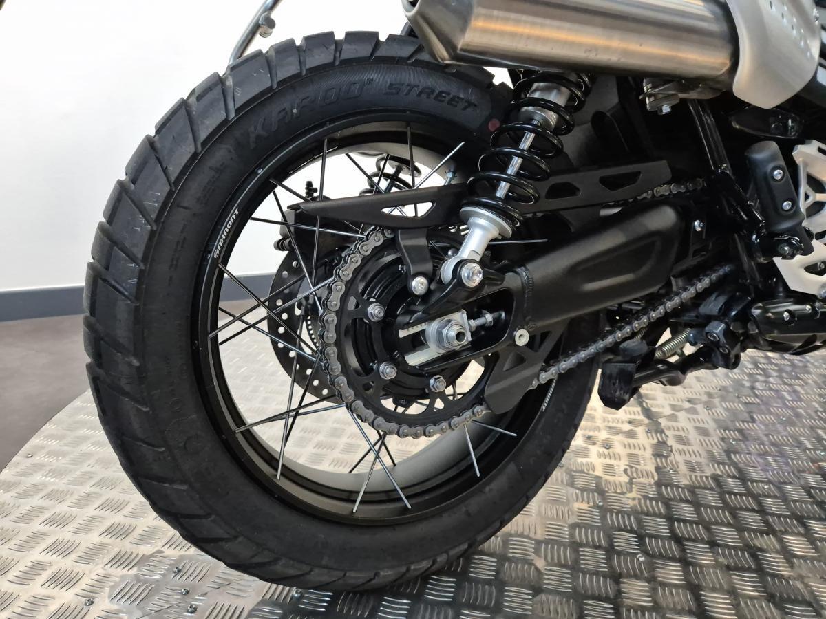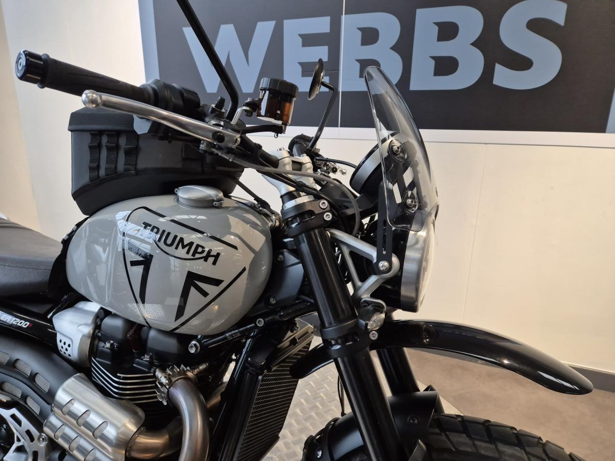The ever popular latest version of Triumphs Scrambler 1200 - the X which is an ideal mix of all the good things that you want from the bigger bike but has the seat height of a smaller bike at 820mm. This bike was first registered in April 2024 on a '24 plate and has covered just under 5500 miles. It was serviced in May 2024 and benefits from the remainder of the Triumph Warranty until April 2026. Finished in the striking Ash Grey colour scheme and comes with TFT dash, riding modes, switchable ABS and Traction Control. The previous owner also added lots of tasty genuine accessories too, comprising of a Triumph high level front mudguard, Triumph centre stand, Triumph rugged tank bag, Triumph pannier rail, Triumph rear rack, Triumph pannier rail and a Dart tinted screen..