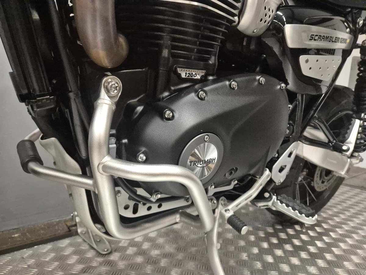 This mighty fine 1200 XE was first registered in late November 2024 on a '74 plate, one previous owner with 5822 miles on the clock. This XE Scrambler 1200 is looking spectacular in Sapphire Black and is complemented with gold forks and aluminium front and rear mudguards. Fitted with as standard TFT colour dash, rider modes, switchable ABS and traction control and being the XE version it also benefits from the longer travel suspension, additional off-road pro mode and handguards. Plus, this one further benefits from the additional accessories fitted, comprising of a tinted fly screen, heated grips, lower engine bars, rear luggage rack and a set of adventure fog lights!