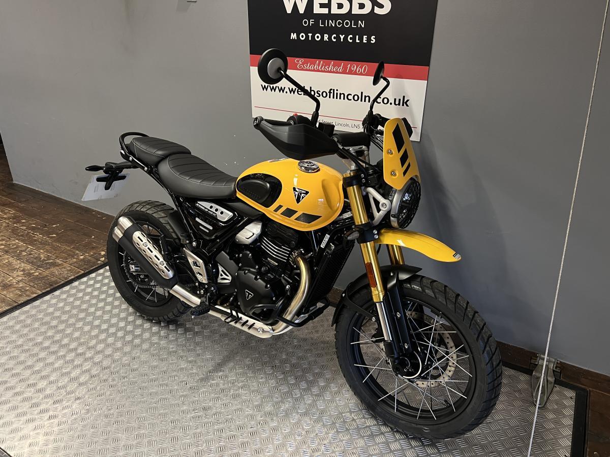 Brand new and unregistered Triumph Scrambler 400 XC now in stock at Webbs of Lincoln Motorcycles. New for 2026!