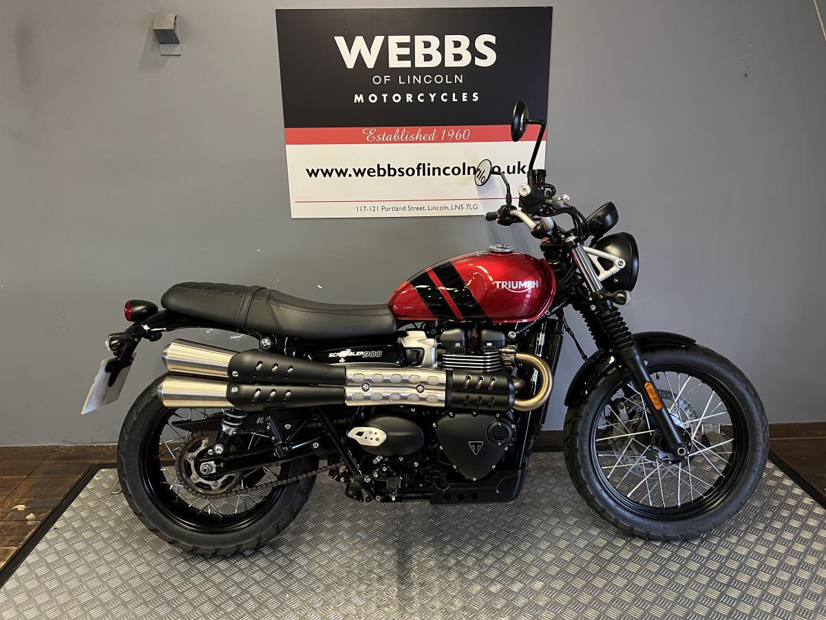 First registered in December 2022 on a 72 plate with 13,212. This two owner from new Triumph Scrambler 900 is finished in Carnival Red with Jet Black stripes. Backed up with full Triumph dealer service history and will benefit from a service and MOT once sold. In standard condition and comes with Datatag, two keys and all relevant paperwork.
