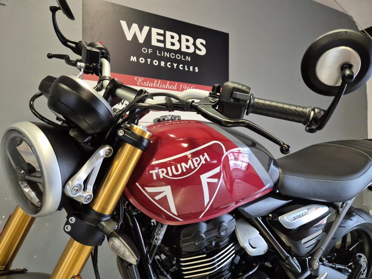 A lot of bike for just £3999!!! This Triumph Speed 400 was first registered by Triumph UK in January 2024 on a '73 plate. With just over 4,100 miles on the clock we've just treated this lovely carnival red and storm grey Speed 400 to a new set of tyres and will carry out a fresh annual service prior to your collection in readiness for you to get on and enjoy!