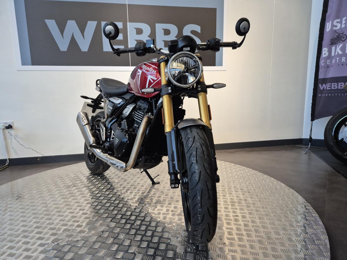 For further information please contact our Peterborough sales team or visit our showroom at 18, Flaxley Road, Kingston Park, PE2 9FT. Our store is open Tuesday to Saturday. Closed on Sundays, Mondays & Bank Holidays. Find us approx. 3 miles from the A1(M) Peterborough services at J17. Take the A1139 Fletton Parkway to Junction 3A. Follow the signs for Kingston Park which is located Nr. the Amazon Distribution Centre off the A605. Webbs is a family business, established in 1960. We are a long-standing main dealer for Triumph Motorcycles and offer a great selection of quality used motorcycles of all marques. Finance is available (subject to status). We stock a great selection of Parts, Clothing & Accessories and have aftersales back-up with a workshop facility and highly trained technicians for your future servicing needs. We look forward to welcoming you and the coffee machine will be on! Many thanks for looking.