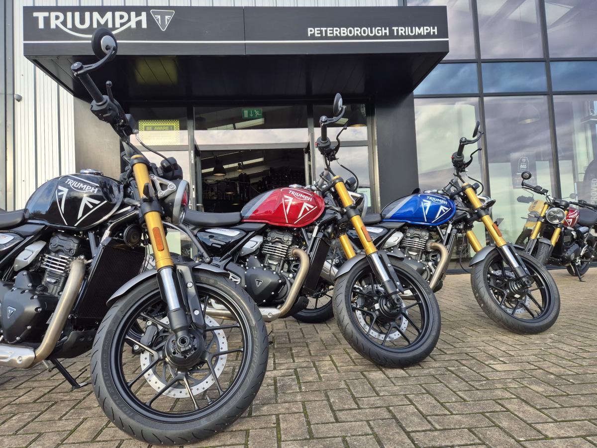 For further information please contact our Peterborough sales team or visit our showroom at 18, Flaxley Road, Kingston Park, PE2 9FT. Our store is open Tuesday to Saturday and closed on Sundays, Mondays & Bank Holidays. Find us approx. 3 miles from Peterborough services on the A1(M)/A1 at J17 on to the A1139. Then Junction 3A off Fletton Park Way. Follow the signs for Kingston Park which is located off the A605 at the Amazon Distribution Centre. We are long standing UK main dealers for Triumph Motorcycles. We have ample on-site parking. A great selection of new and used motorcycles and scooters. Finance is available (subject to status). We hold a huge selection of Parts, Clothing & Accessories and have fantastic back-up for aftersales with a modern workshop facility and highly trained technicians for your future service needs. Many thanks for looking.