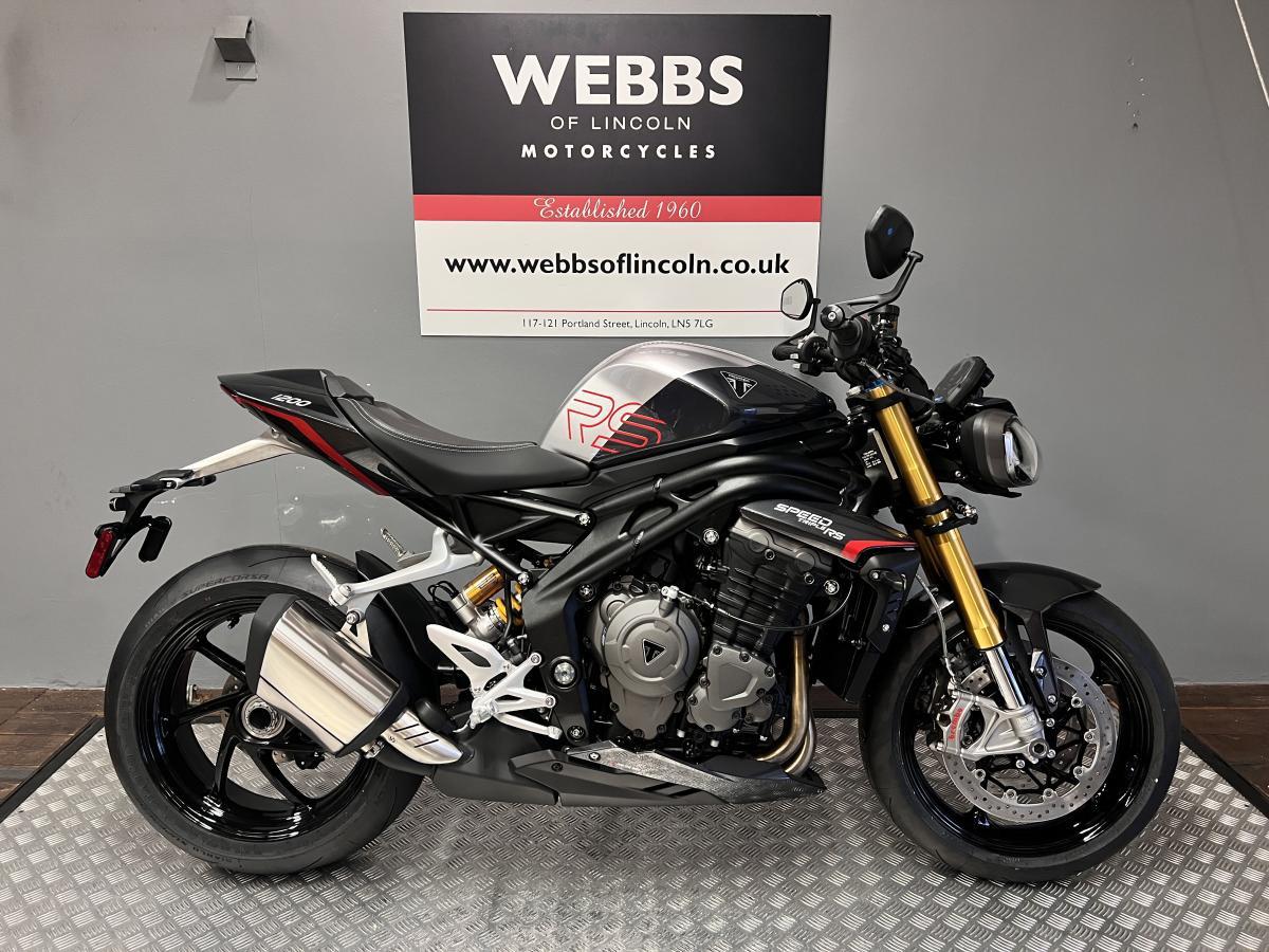 RRP £17,895 WEBBS BLACK FRIDAY PRICE £16,895. SAVE £1,000! Brand new & unregistered Triumph Speed Triple 1200 RS finished in Granite / Diablo red.