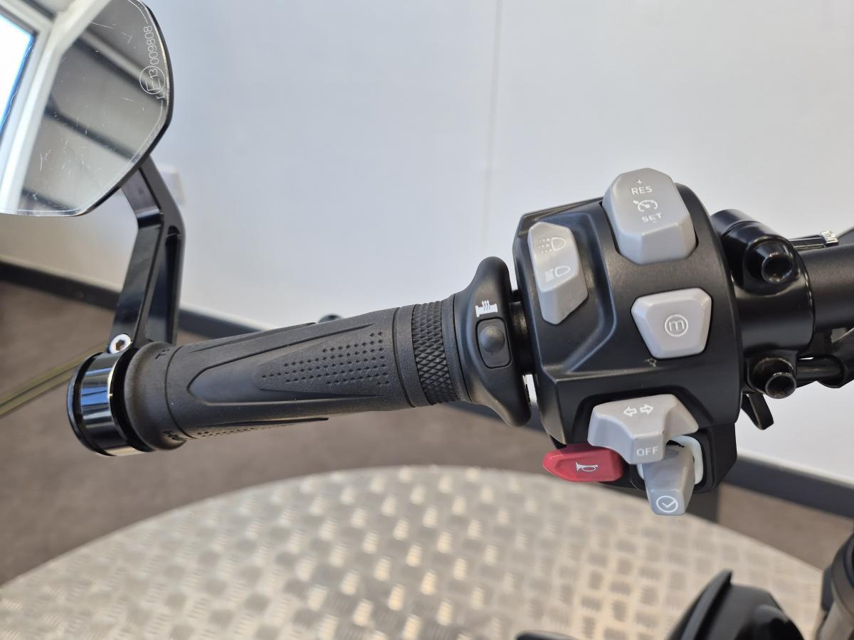 This is clearly a well-cared for Speed Triple 1050 RS presented in the stunning colour of Crystal White metallic. First registered in late October 2018, running on a '68 plate and has covered just shy of 24,000 miles. Backed up with service history and a major service recently completed by an independent specialist. This 1050 RS ABS model has been lowered in way of a L.U.S.T. Racing lowering kit. (Std. links available for it to go back to std. height if preferred). There is a small fortunes worth of extras fitted to this bike. Be it little nice trinkets - like the brake reservoirs and the clutch cable pully guide, quality bar-end mirrors (that don't vibrate), heel plate and Quad-Lock mount, the list goes on!... to the likes of a lots of tasty carbon accessories, radiator guard, tail tidy, tank pad(s), frame protection sliders, visor screen, heated grips and a low-boy SC Project exhaust which looks and sounds superb! This bike really must be seen (& ridden) to appreciate it to its fullest. It's an awesome bit of kit.