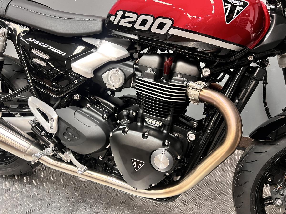 RRP £13,195 WEBBS BLACK FRIDAY PRICE £12,195. SAVE £1,000! Brand new & unregistered Triumph Speed Twin 1200 finished in Carnival Red / Sapphire Black. Experience the perfect blend of contemporary design and authentic DNA; exhilarating sports performance and agile dynamic handling delivered with classic style and character.