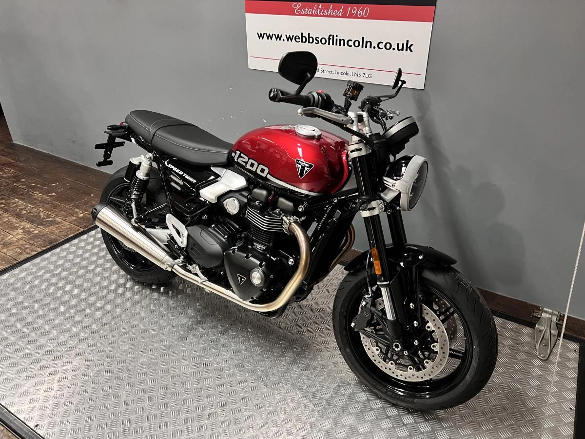 CURRENTLY IN STORE AT LINCOLN. A new and unregistered 2026 Triumph Speed Twin 1200 in Carnival Red / Sapphire Black offering a massive saving of £1,800.00 off the RRP! Was £13,295 NOW £11,495! Ride away on the new '26 plate!