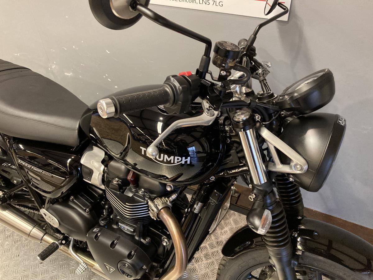 Supplied from new by Webbs of Lincoln to the one former keeper in May 2023, this Jet Black Speed Twin 900 has covered 2,815 miles and is fitted with a rear rack. First service was completed by us here at Webbs with was serviced by the original owner in mid-2025. Included in with the price will be a yearly service and the 1st MOT. There is a small chip on the tank which can be seen on the photos, and is reflected in the price.