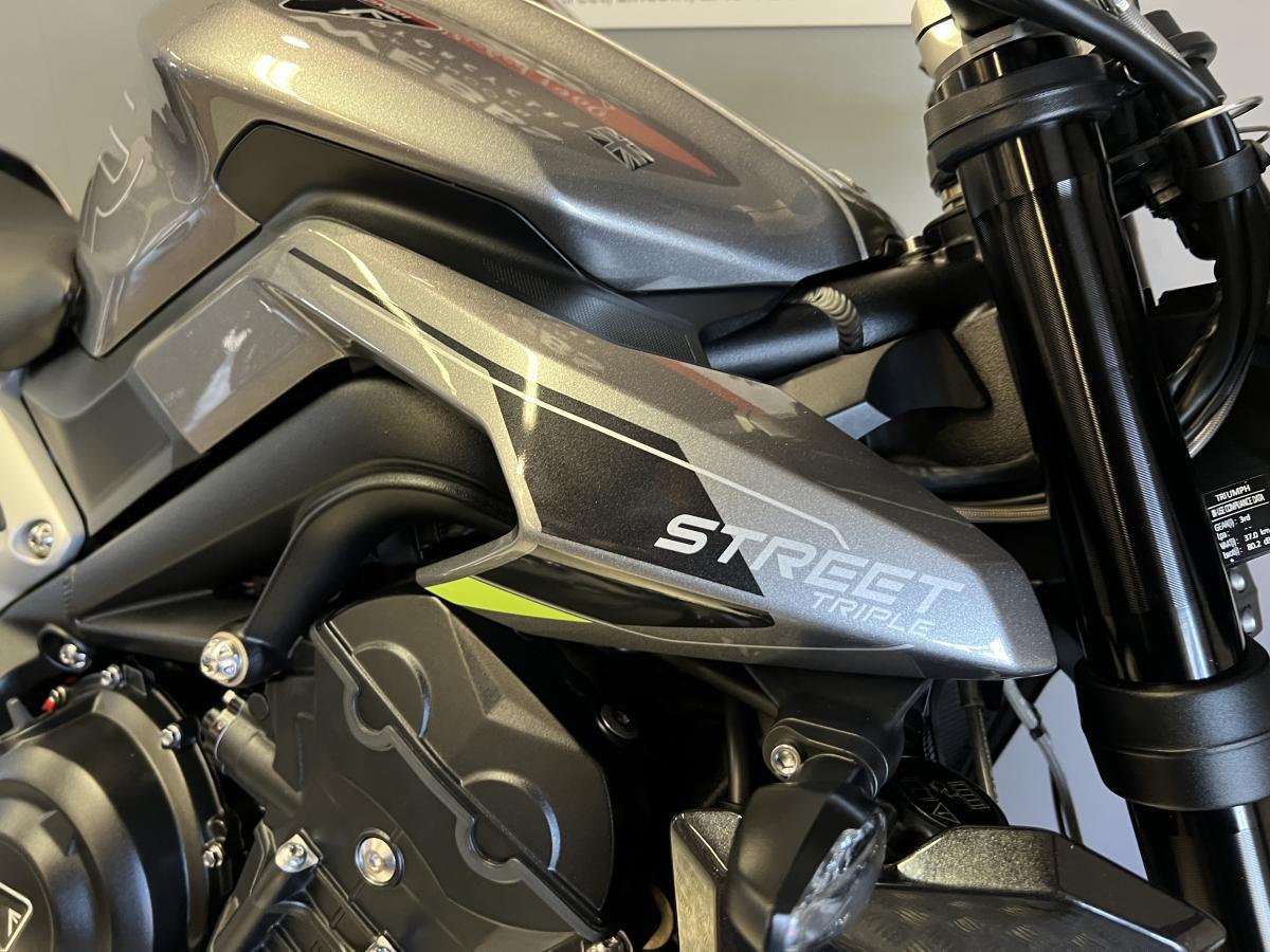 Supplied and serviced by Webbs of Lincoln Triumph, is one owner from new Triumph Street Triple R 765 is finished in Silver Ice with 8,393 miles on the clock. First registered in 2023 on a 23 plate and is fitted with some nice extra's including bar end mirrors, radiator guard and a belly pan. Backed up with 3 previous services and comes with Datatag ID security.
