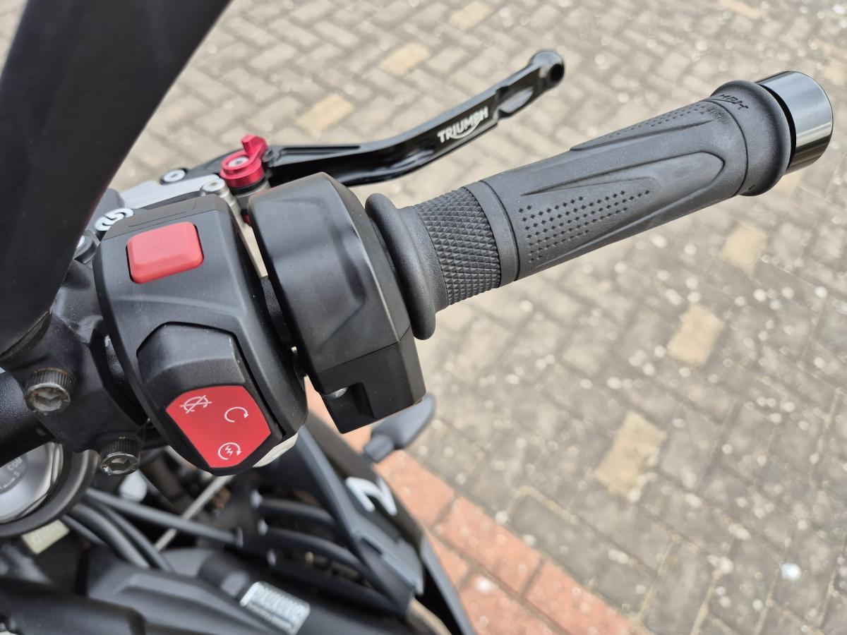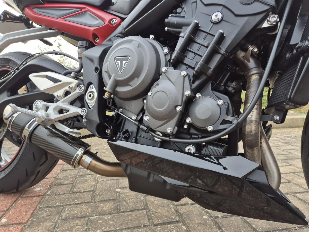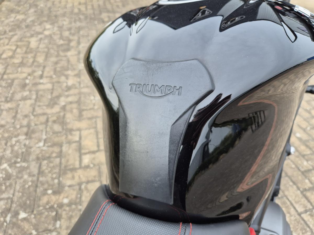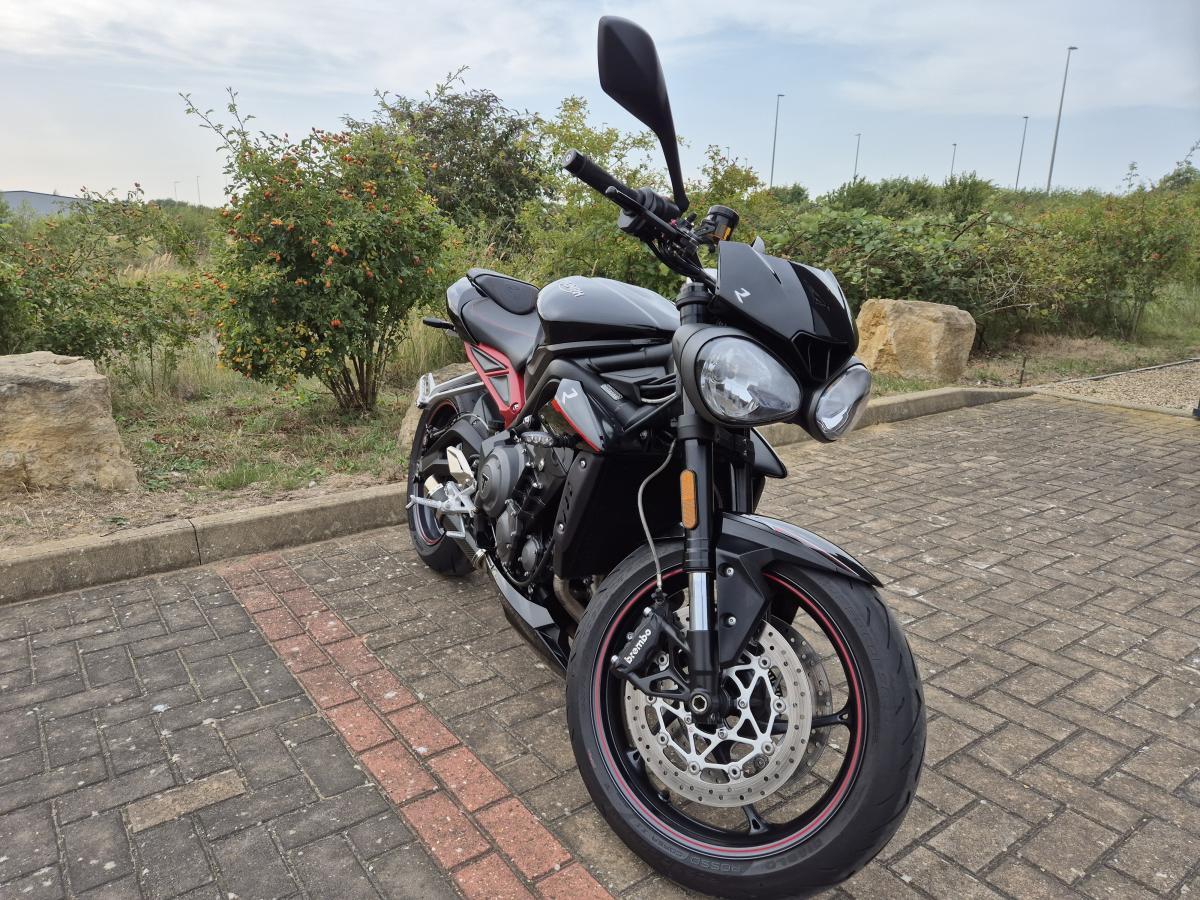 Genuine Factory LRH (LOW RIDE HEIGHT) 765 R model. This lovely Street Triple is finished in Jet Black with red accents and looks great! With just 7,100 miles covered and backed up with full main dealer service history. (the last one at 6996 miles in June 2025). Fitted with some nice extras including a fruity exahust that sounds superb!