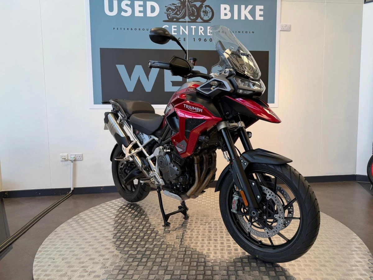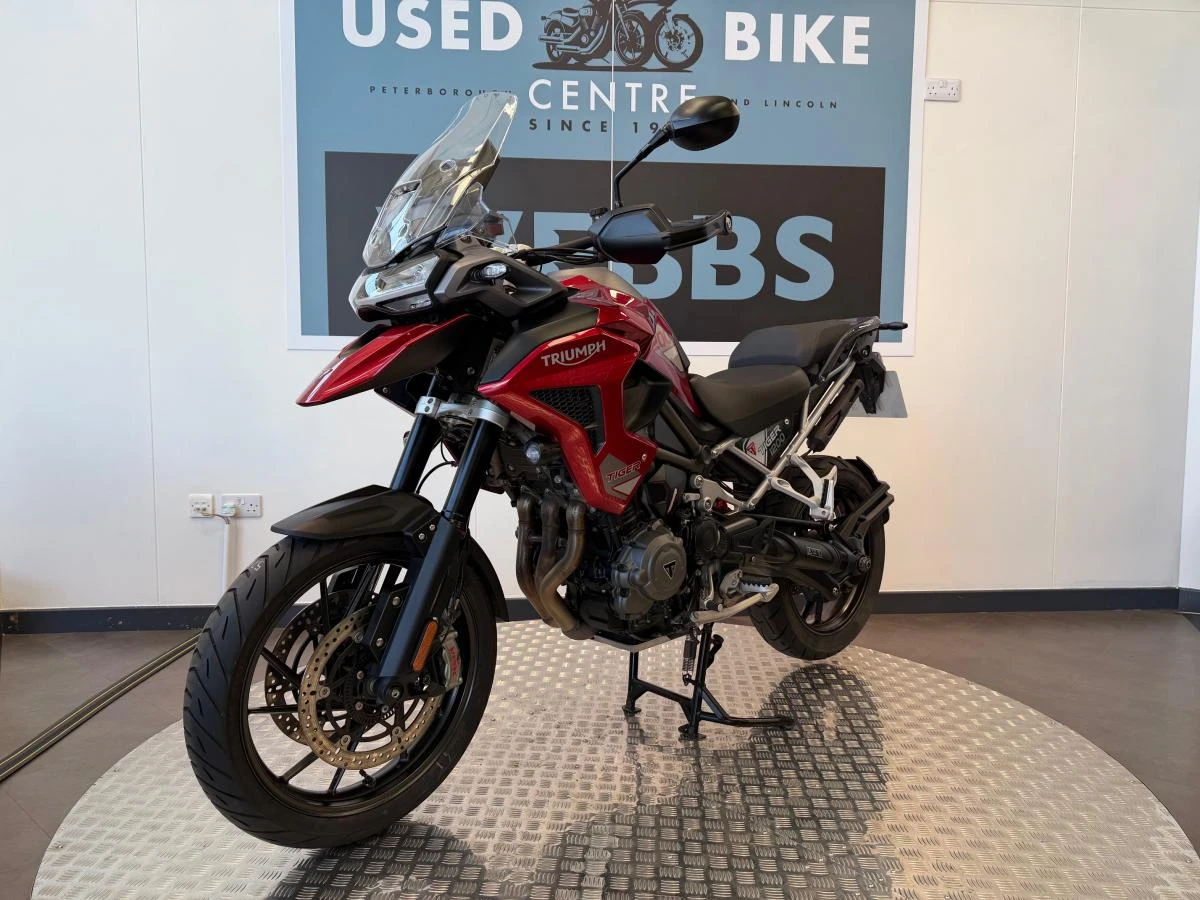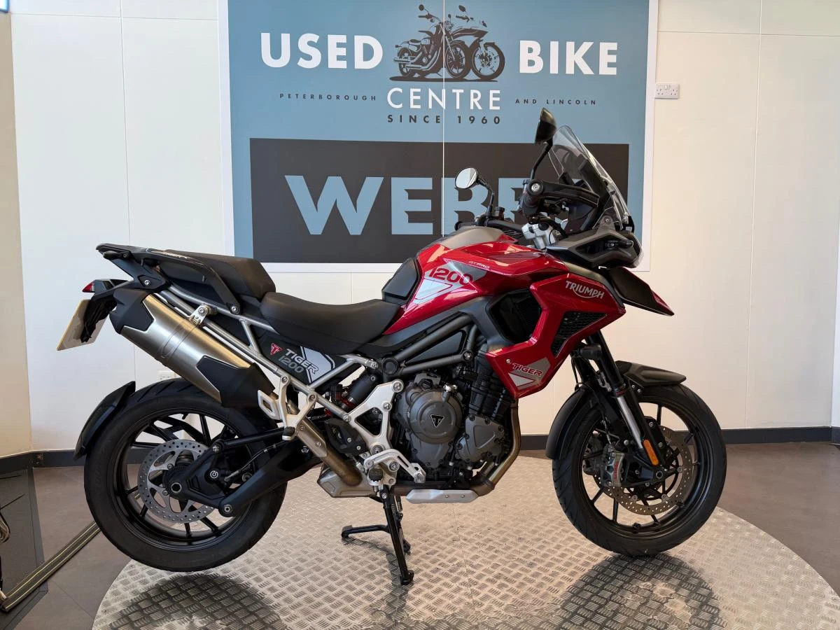 Triumph Tiger 1200 GT Pro finished in the classy Carnival red & contrasting grey paint scheme. This bike was registered in April 2024 and is the latest version of the popular shaft-drive adventure bike. It has covered just under 6000 miles and has 2 Triumph stamps in the service book. The spec on these bikes are superb including TFT colour dash, switchable riding modes, electronic suspension, Triumph shift-assist, Keyless ignition, Cruise control, Heated Grips, plus loads more!.. and there is also still mannufactures warranty on this bike until April 2027.