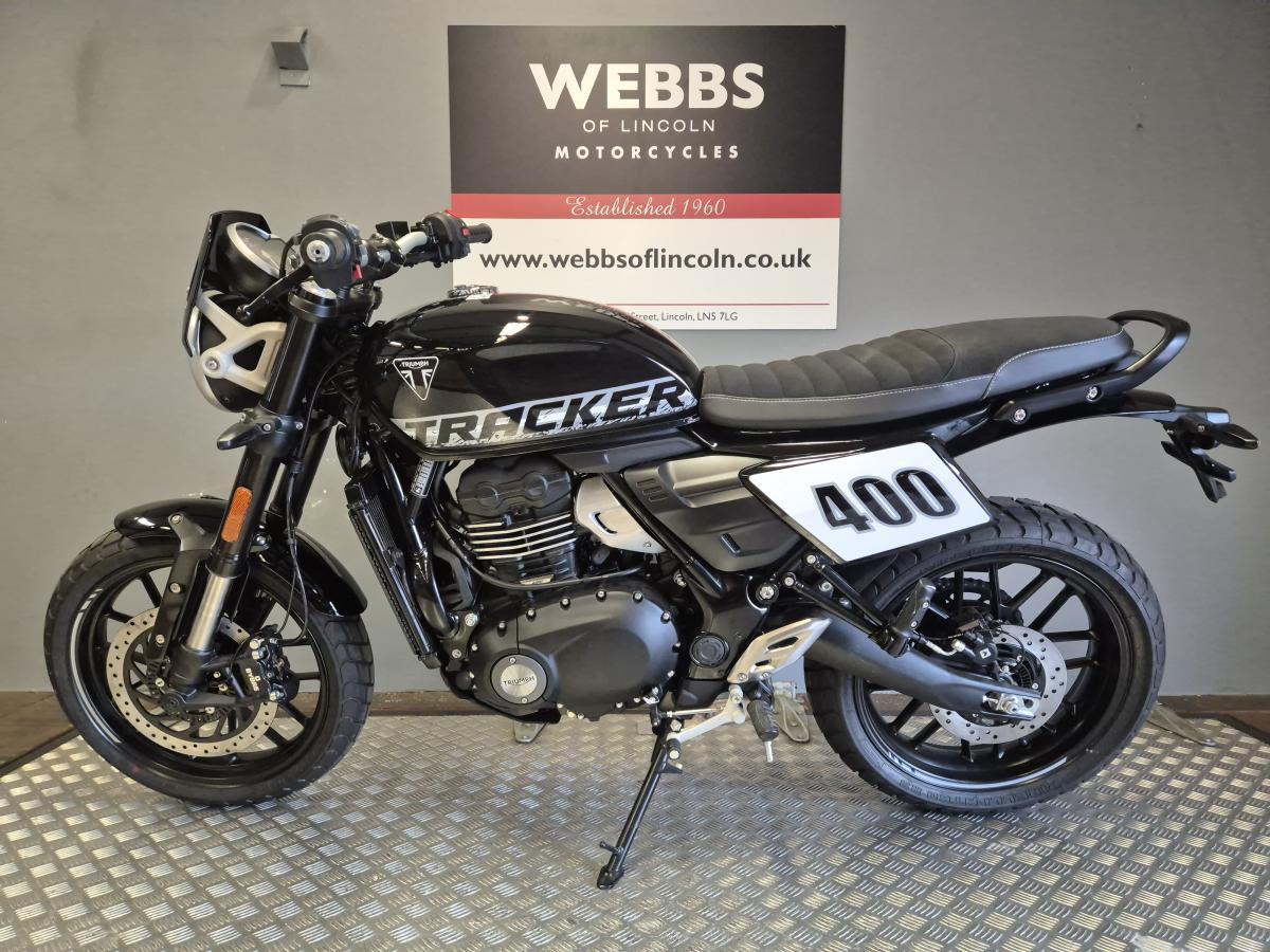 This brand-new Tracker 400 has now landed and in stock here at Webbs! the Tracker 400's engine blends modern performance with classic character. Flat track attitude with unmistakable design DNA the Tracker 400 stands out from the crowd. Now producing 42 PS peak power for real riding performance. Pricing starts from £5745.00 for the Phantom Black colourway and just an additional £100 paint premium for the Racing Yellow and Aluminium Silver.