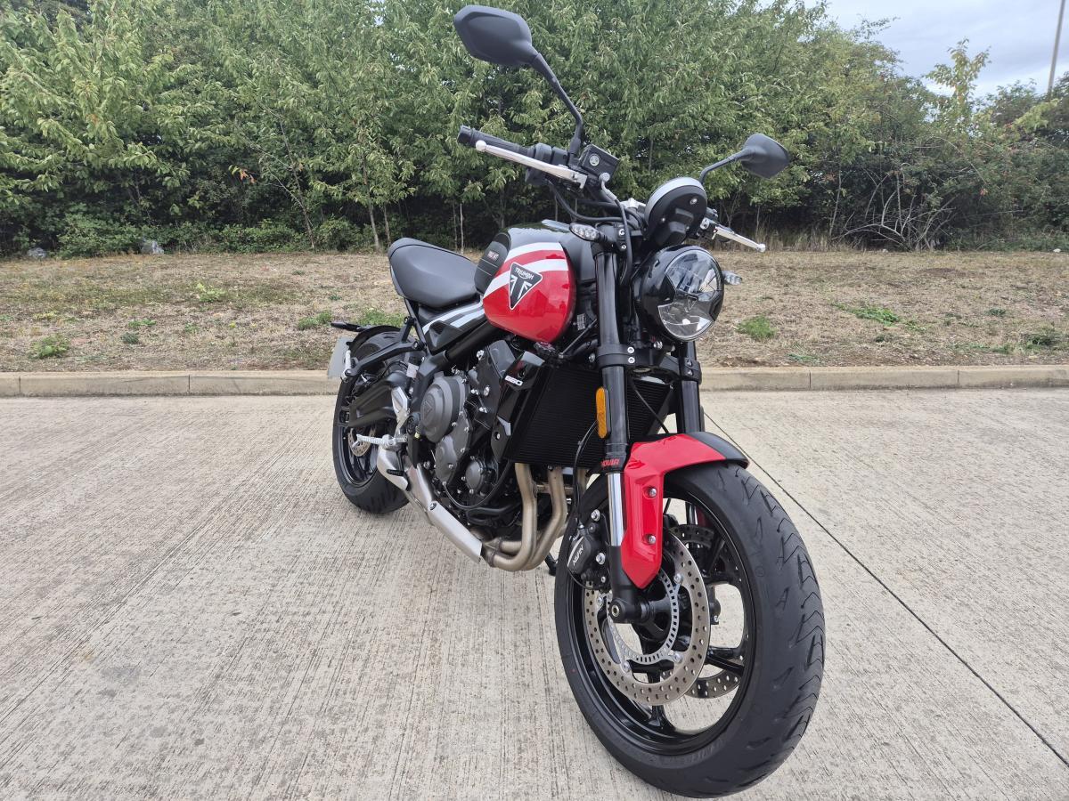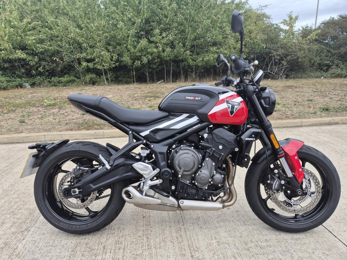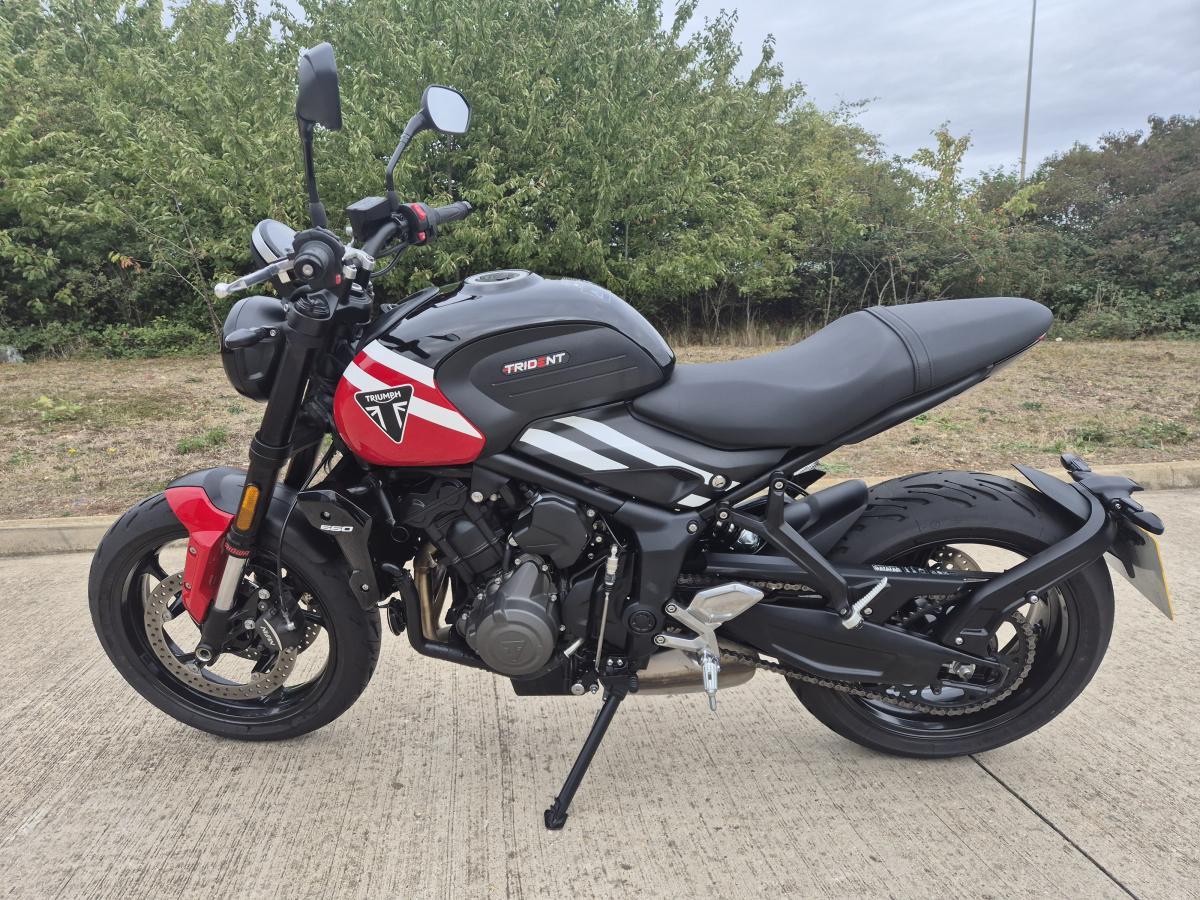 Here's one of our very own. This latest 2025 model year Trident 660 finished in Diablo Red and Sapphire Black. Run in and serviced by us here at Webbs of Peterborough Triumph and has now covered approx. 1850 miles*.