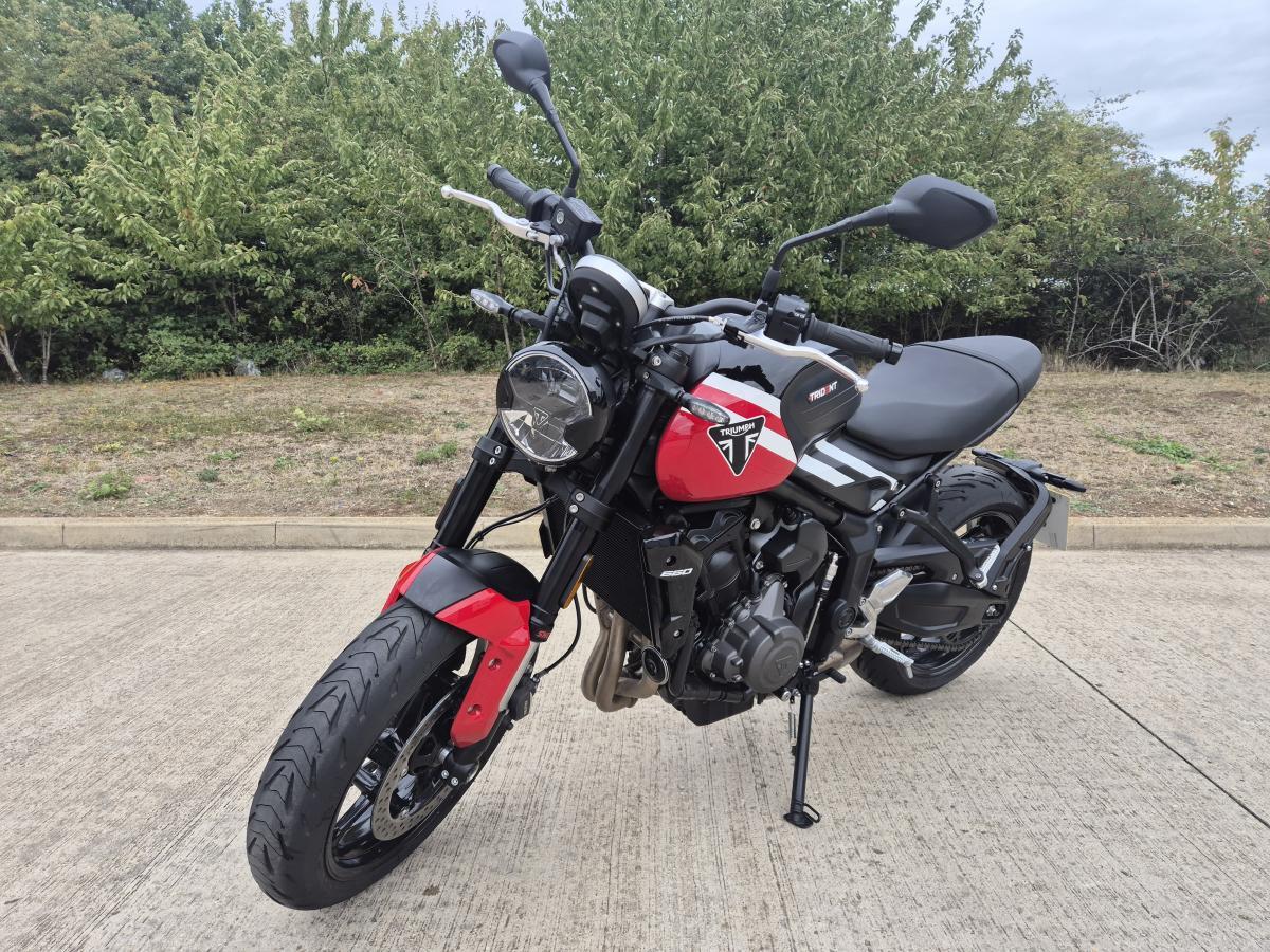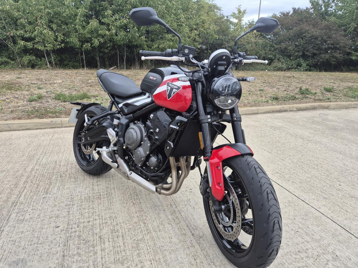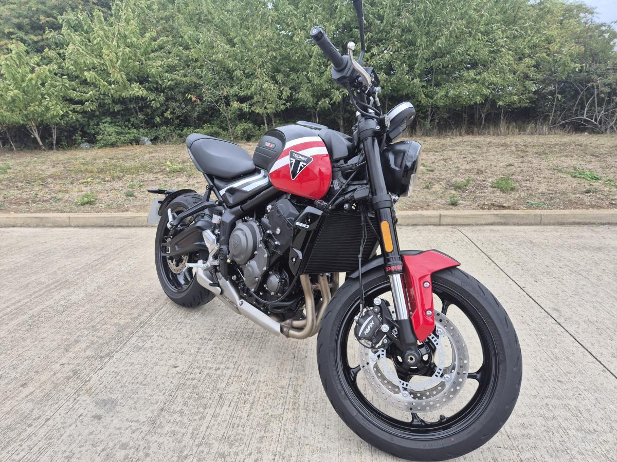 Here's one of our very own. This latest 2025 model year Trident 660 finished in Diablo Red and Sapphire Black. Run in and serviced by us here at Webbs of Peterborough Triumph and has now covered approx. 1850 miles*.