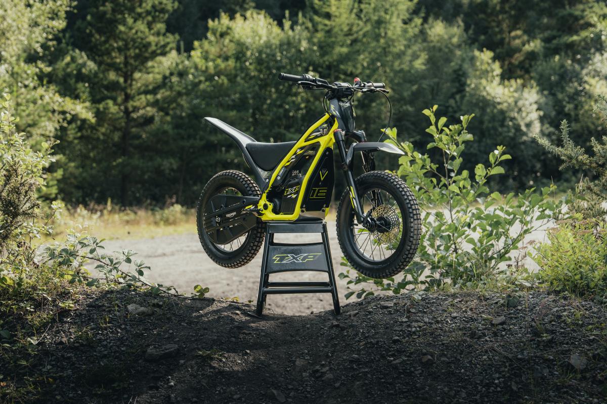 TXP-16: The Next Step in Confidence, Power, and Control For riders aged 5 to 7, the TXP-16 builds on the foundation of the TXP-12 with increased power, upgraded suspension, and a slightly larger chassis. Its 765W 43V motor delivers more torque and a top speed of 19mph, while maintaining the smooth, predictable throttle feel that helps young riders develop control and confidence. The TXP-16 introduces hydraulic disc brakes for stronger, more progressive stopping power, and features a scaled steel frame with a 870mm wheelbase for improved stability. Like the TXP-12, it benefits from two-in-one modular setup, allowing riders to switch between seated and standing configurations in seconds. Engineered for growing riders, the TXP-16 has a 27.2kg frame weight for light, agile handling. Ergonomics are carefully considered, with a 550mm seat height in Xplore mode and 450mm in Trials mode, ensuring easy footing and control. TXP-12 & TXP-20 also in stock at Peterborough Triumph.