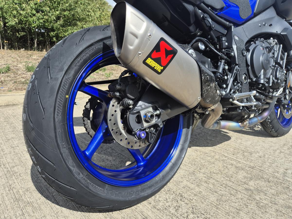 This awesome hyper-naked finished in Yamaha Race Blue colourway really does look the business. This Beauty was first registered on 1st September 2023 on a '73 plate. Having covered just over 7,700 miles by just the one owner from new, who has clearly well cared for this MT-10 and loaded her with goodies too! There's that all-important mega fully Akro system (worth approx.£1500 alone!), also fitted with a plethora of other nice additional extras (please see photos for clarity). She will be up to date with service history at point of sale and any outstanding recalls have been completed and we have just fitted new front and rear tyres for you to run-in and enjoy! So, what’s not to love.